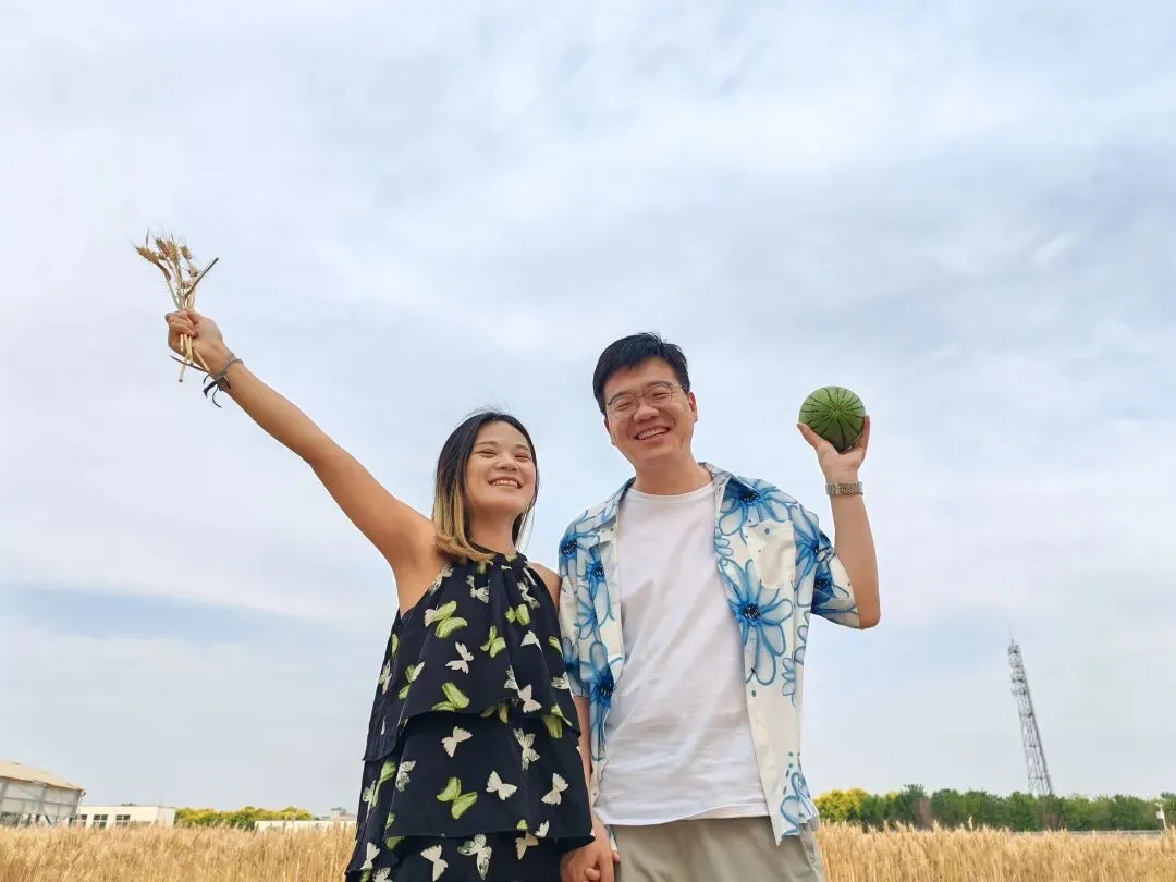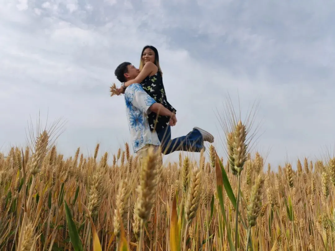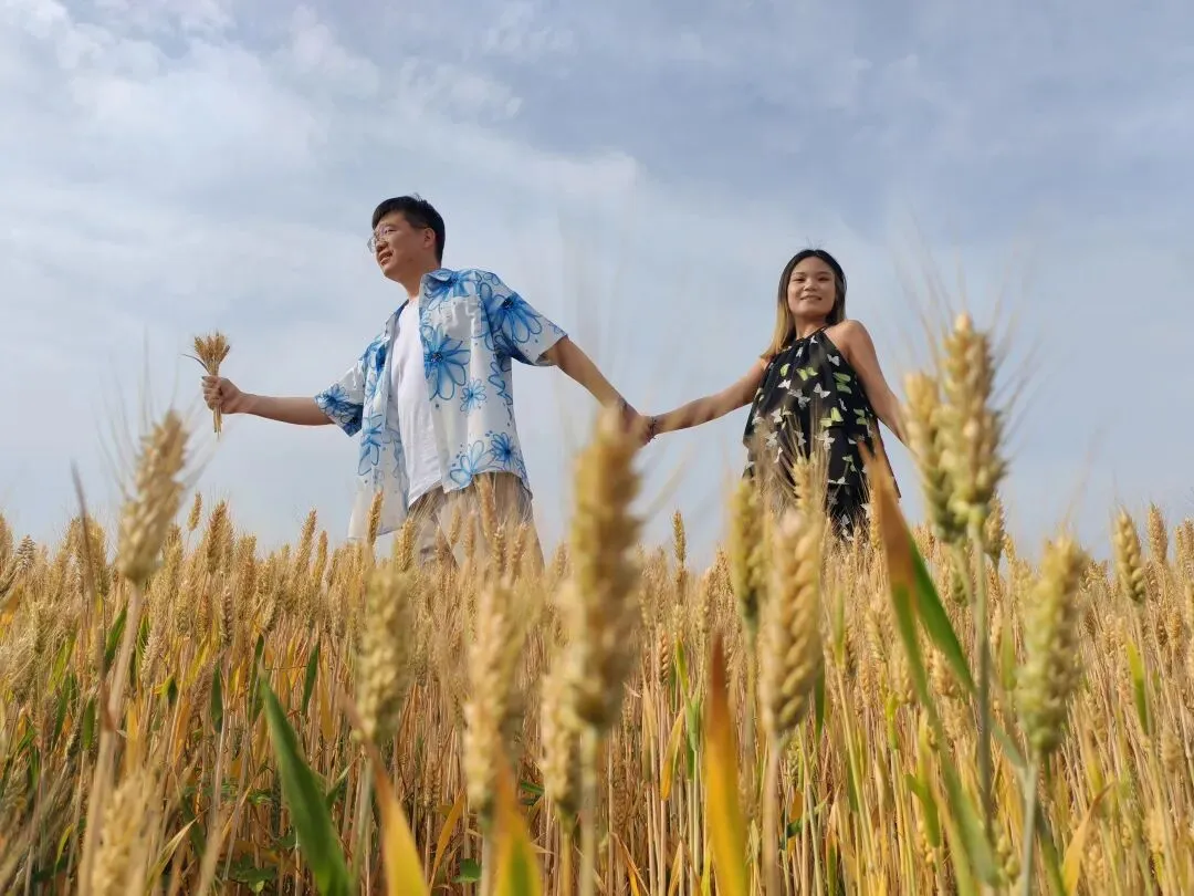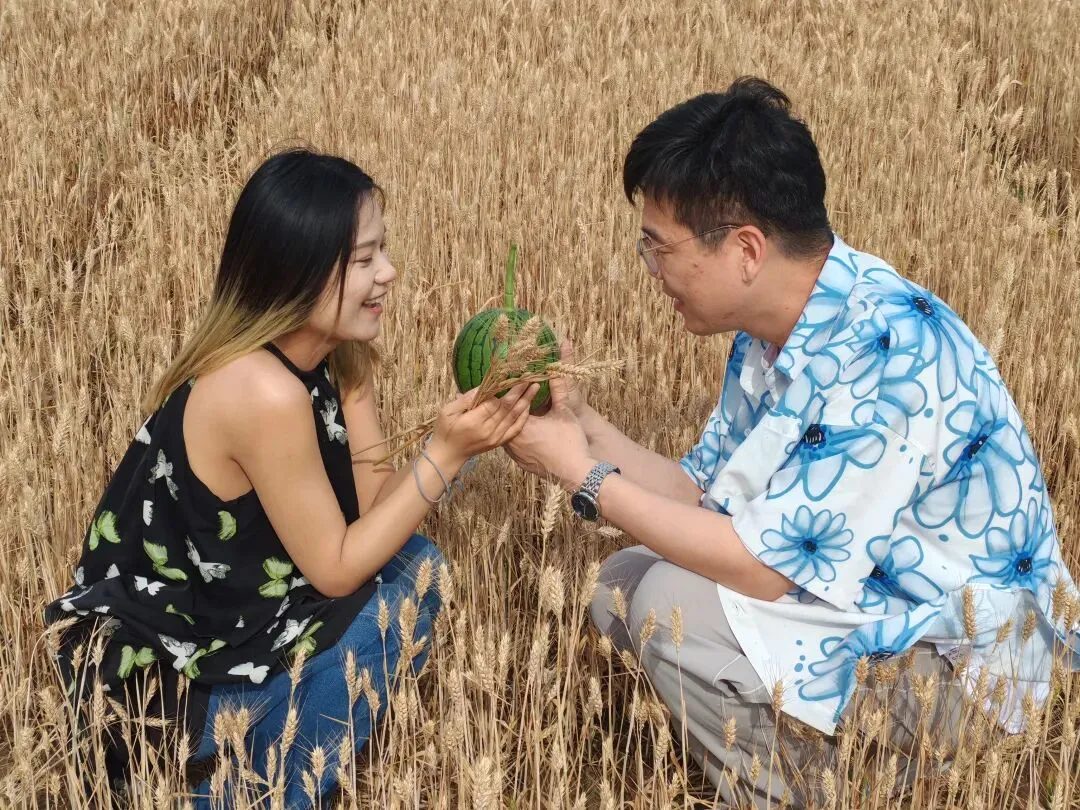 抱着圆滚滚的小西瓜🍉,举着一束麦穗当捧花🌾,在风吹麦浪的田野间,留下我们欢乐的印记✨