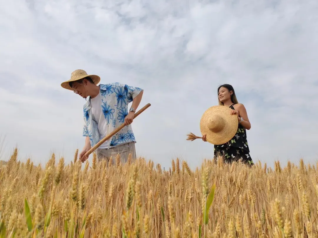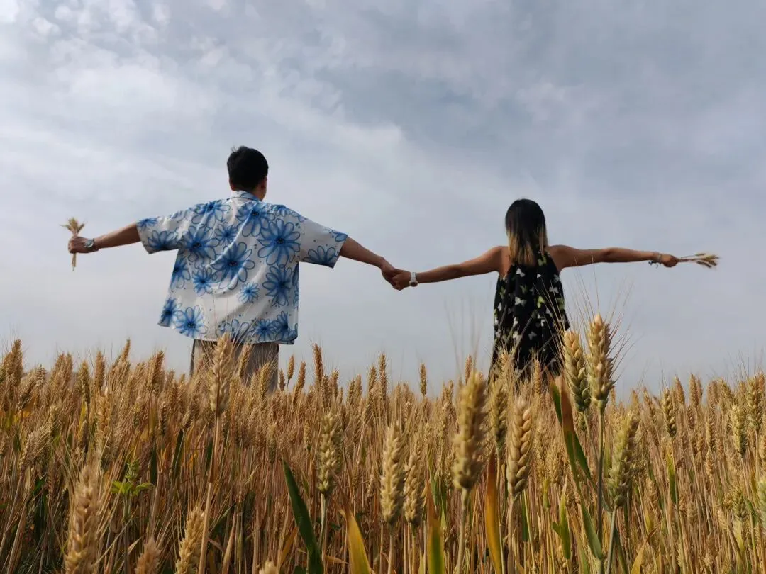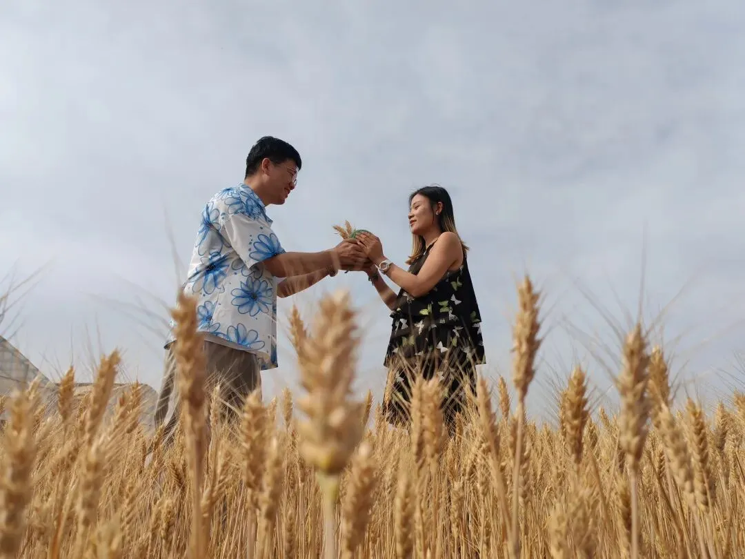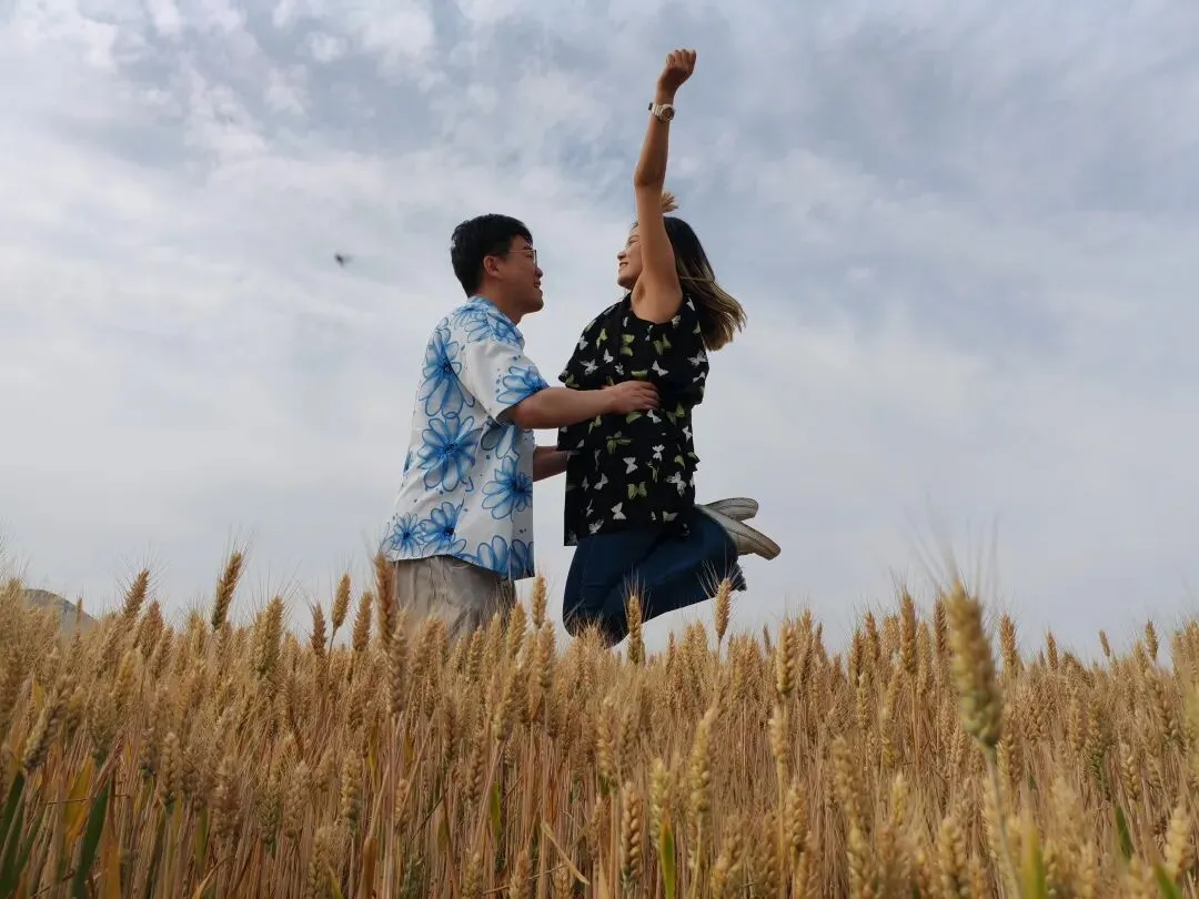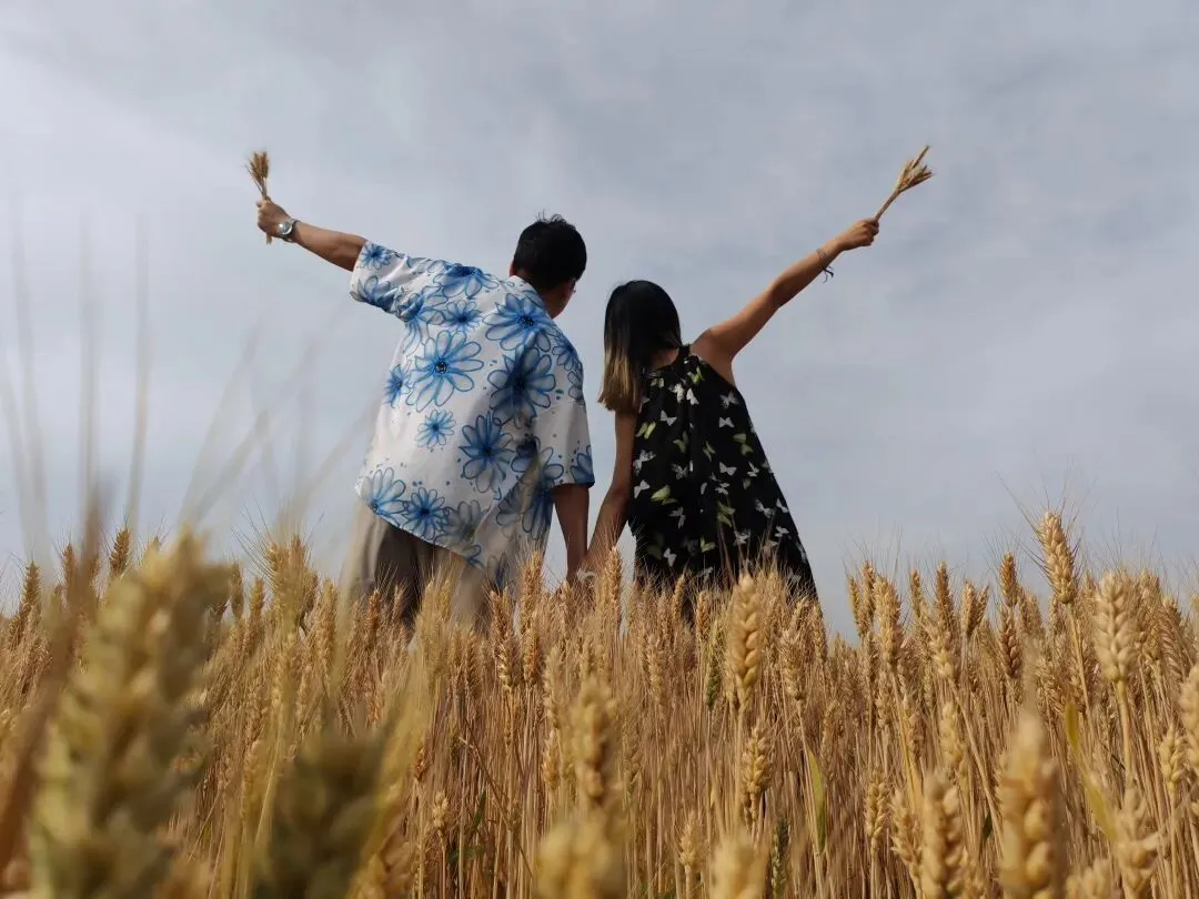 抱着圆滚滚的小西瓜🍉,举着一束麦穗当捧花🌾,在风吹麦浪的田野间,留下我们欢乐的印记✨