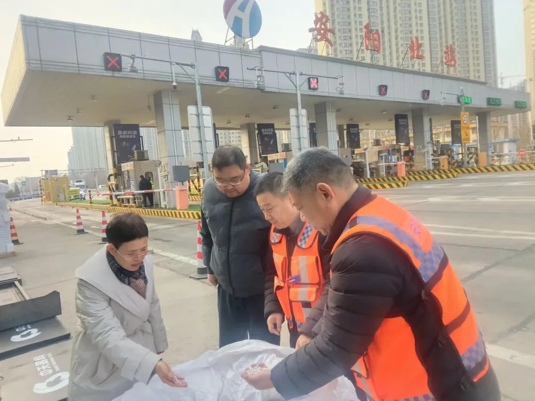 1月17日,安阳分公司副总经理张秀云与稽查大队人员一行到安阳北片区收费站,对恶劣天气防范应对准备工作进行专项督导检查。