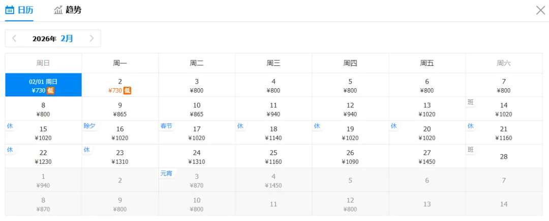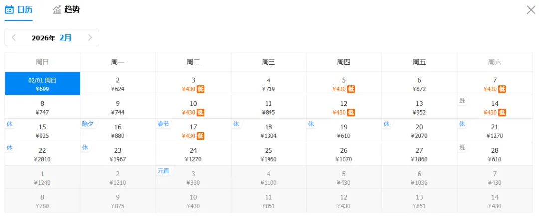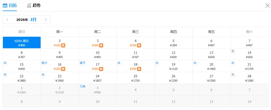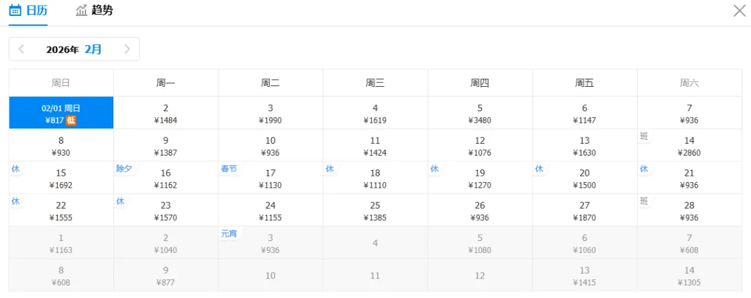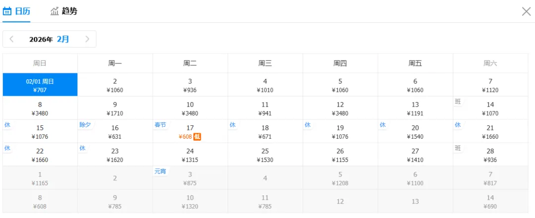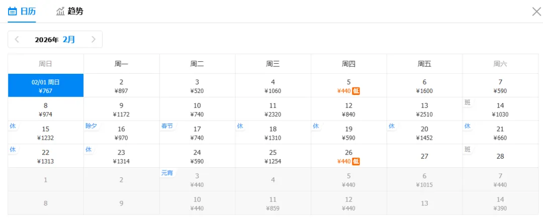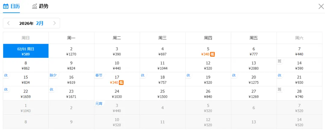 注意:特价截图时间为1月19日16:00,机票价格随时波动,请以购票平台实际查询结果为准(文中价格不含机建燃油费,可能包含中转方案。点击可查看大图)