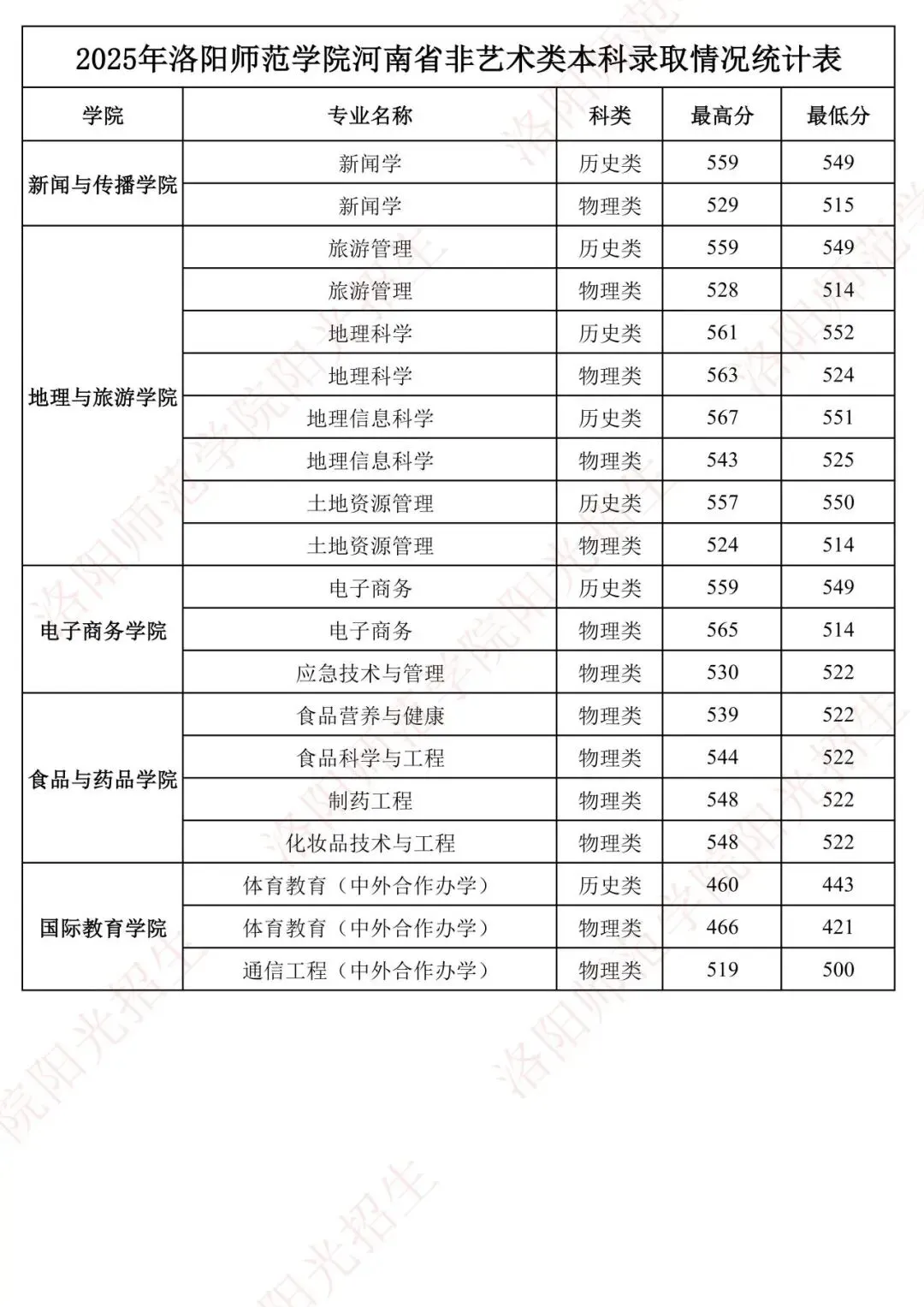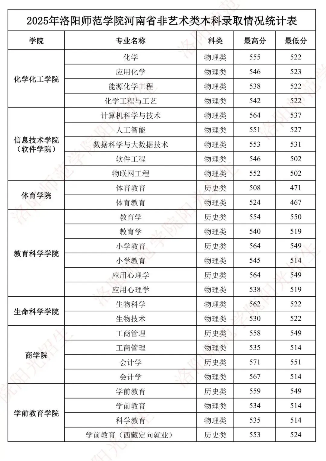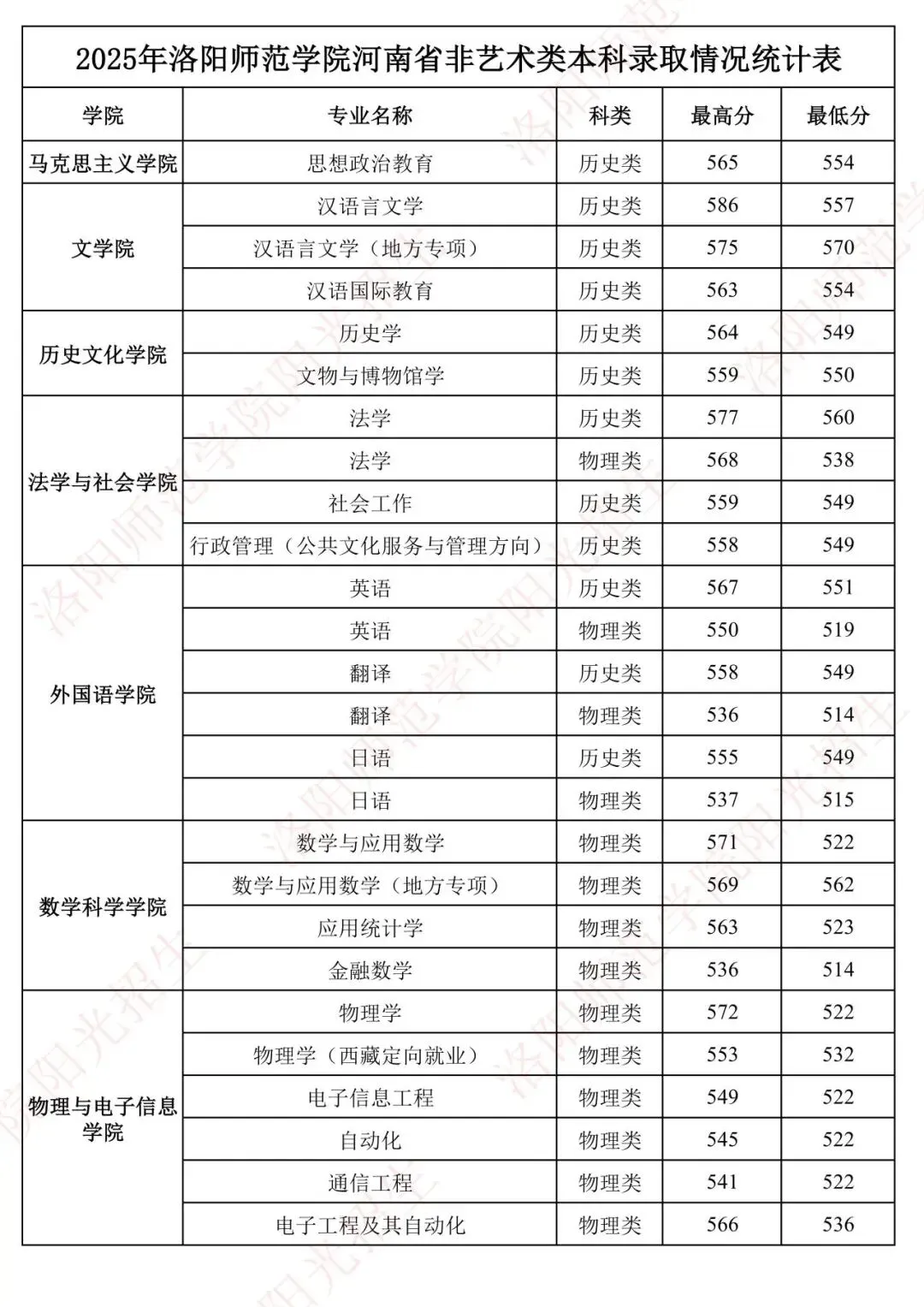 2025年洛阳师范学院河南省非艺术类本科录取情况统计表