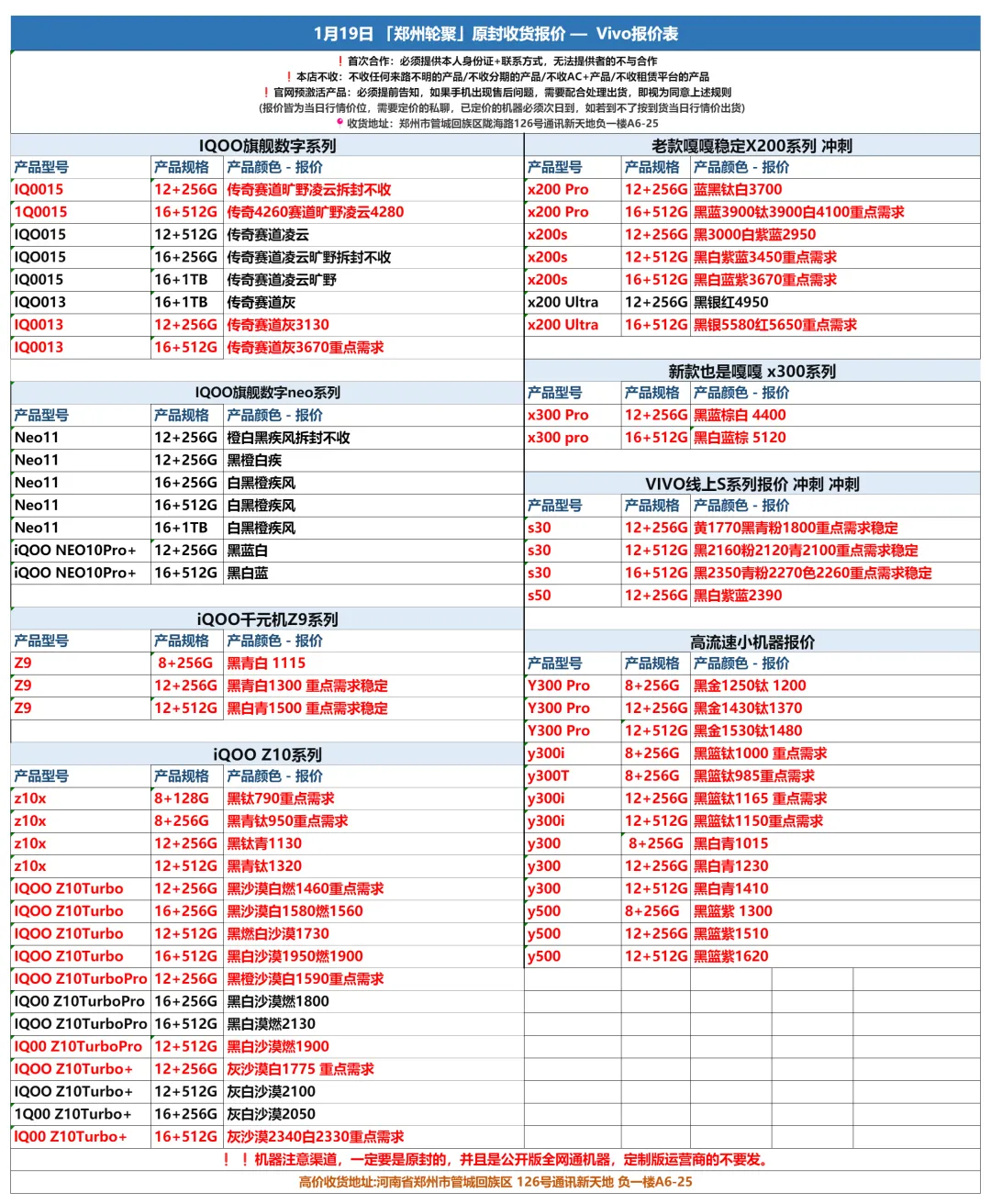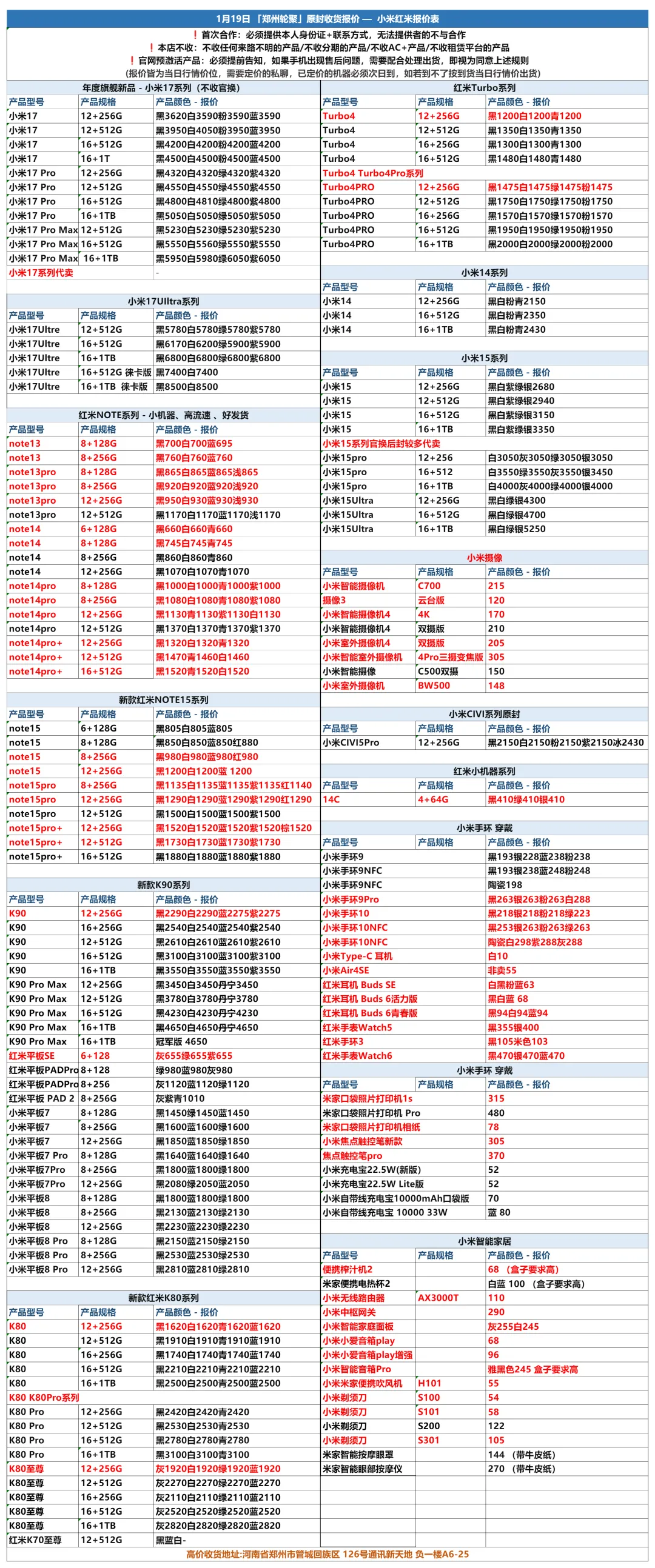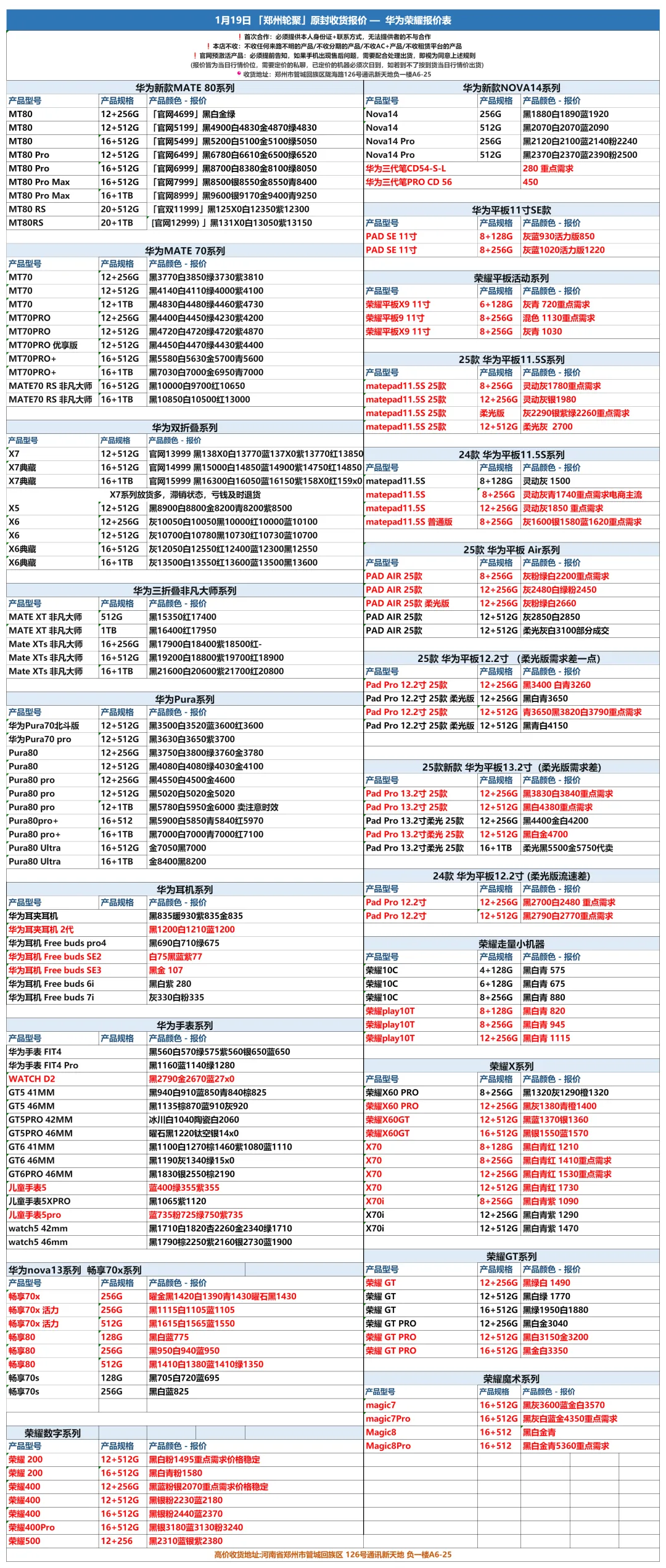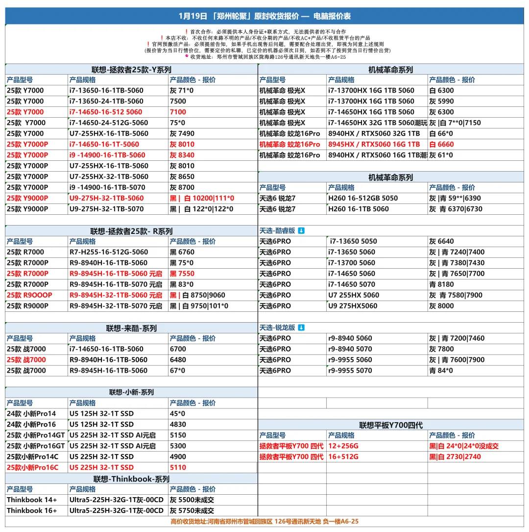 郑州轮聚通讯 2026年1.19日数码报价更新