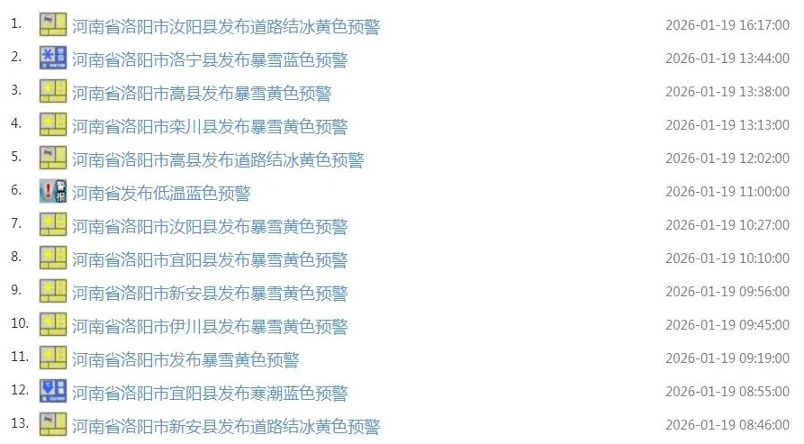 洛阳发布16条预警