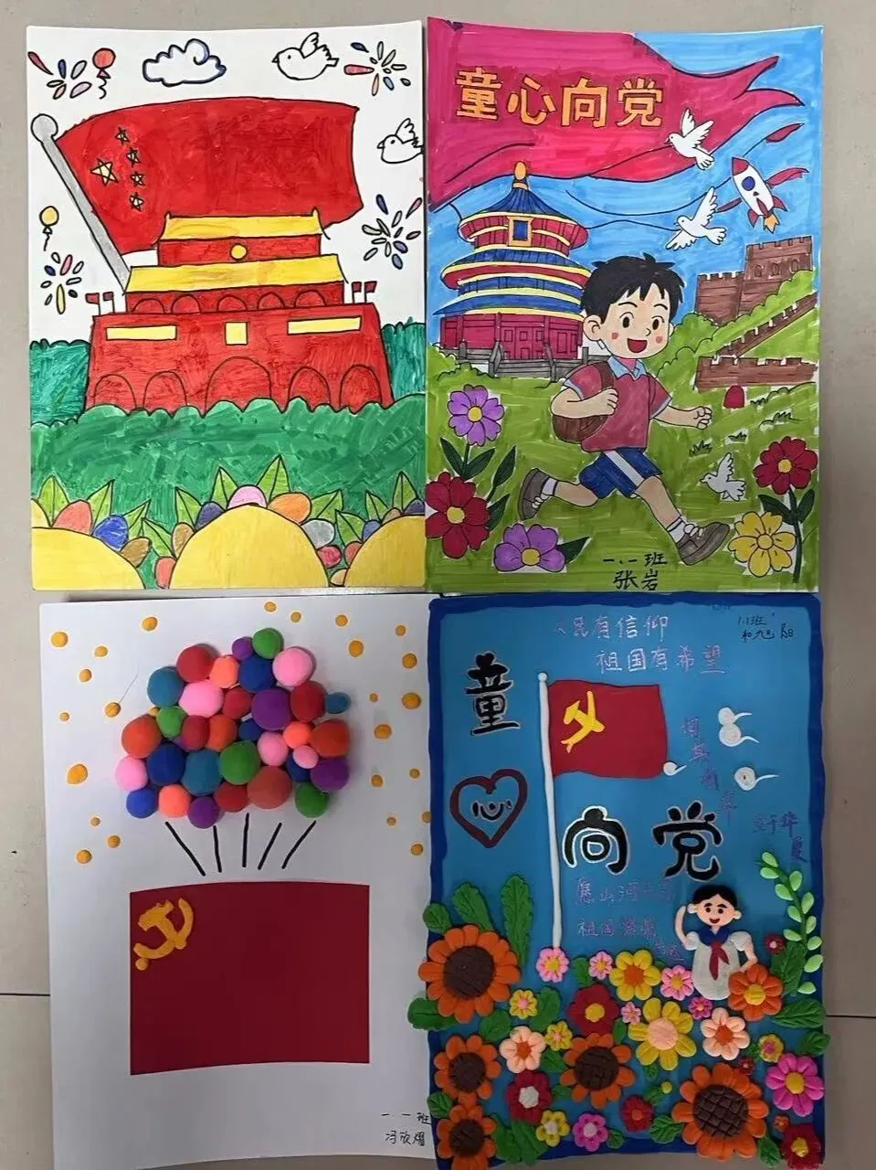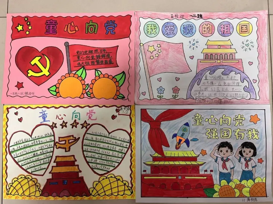 巧手寄深情,童心绘美好。孩子们化身小小艺术家,拿起彩笔勾勒党旗,用黏土捏出红星,一张张作品虽然稚嫩,却饱含着对党的热爱。还有的小朋友唱起了红色歌谣,清脆的歌声回荡在教室的每一个角落。