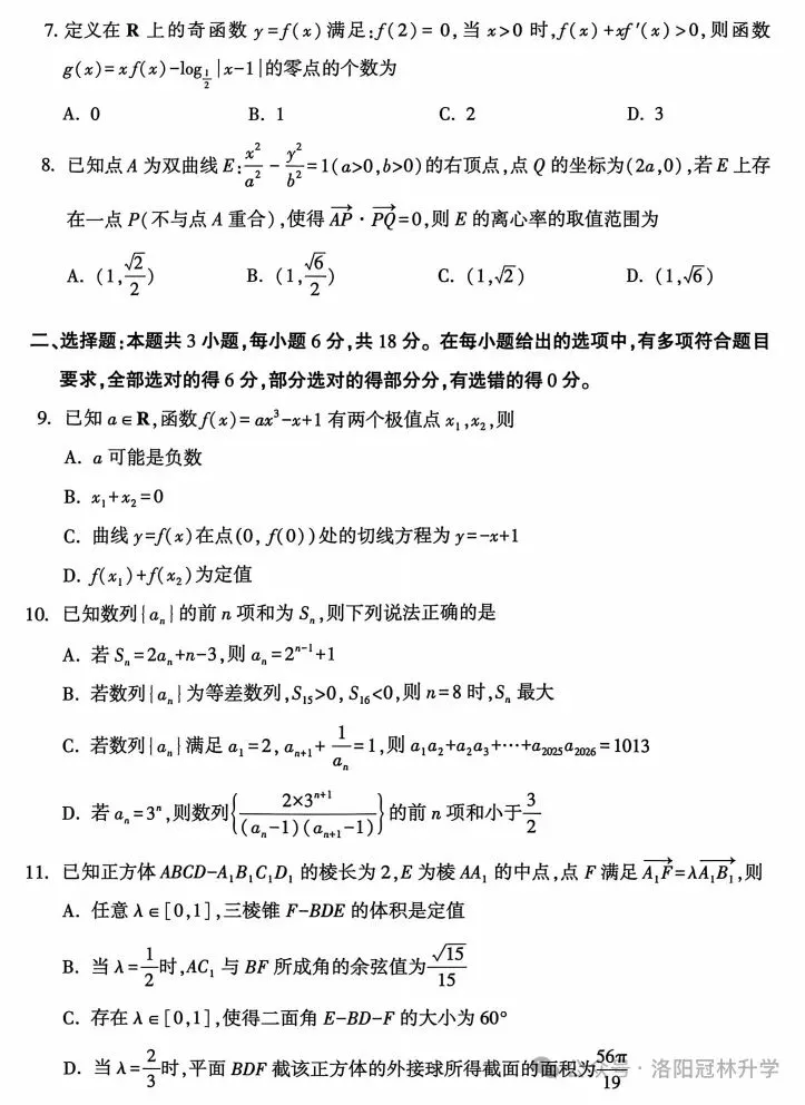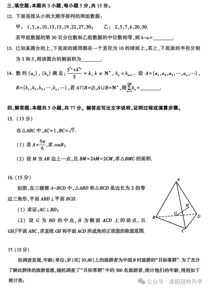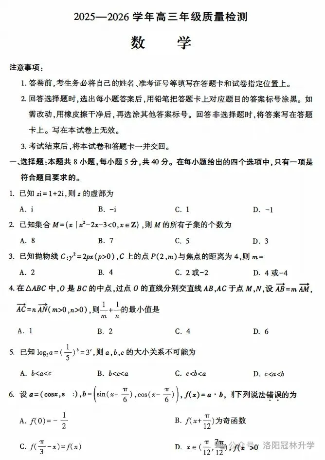 洛阳市豫西联盟洛阳二测高三二测数学试卷及答案.pdf