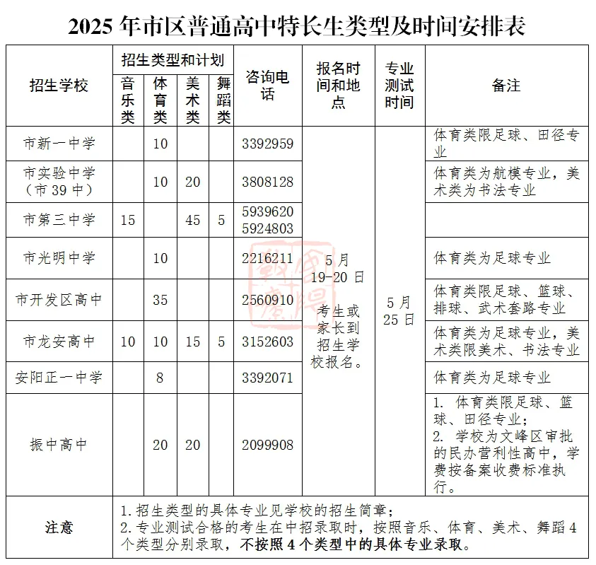 招生对象为2025年市区普通高中招生范围内,已完成中考报名的考生,考生可根据自身特长爱好选报一所学校的特长生。