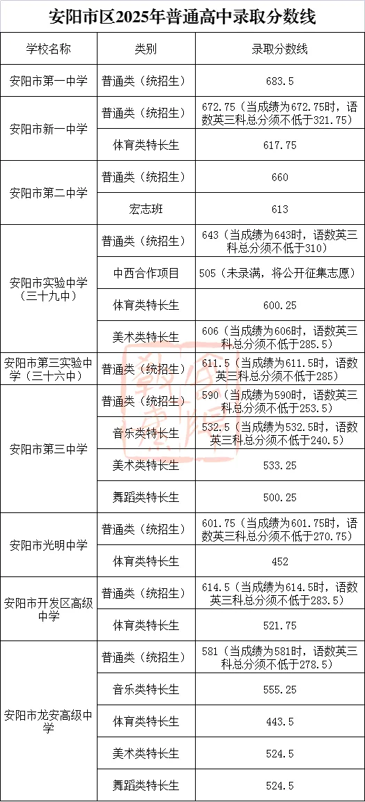 报考市新一中学、市实验中学(市39中)特长生的考生,中招总成绩不低于市区分配生学校最低控制分数线;报考其他普通高中特长生的考生,中招总成绩不低于市区普通高中录取最低控制分数线。