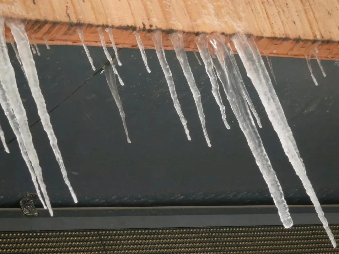 这样的冰挂不仅出现在房檐、门头、摄像头立柱上,还出现在机动车的保险杠上。