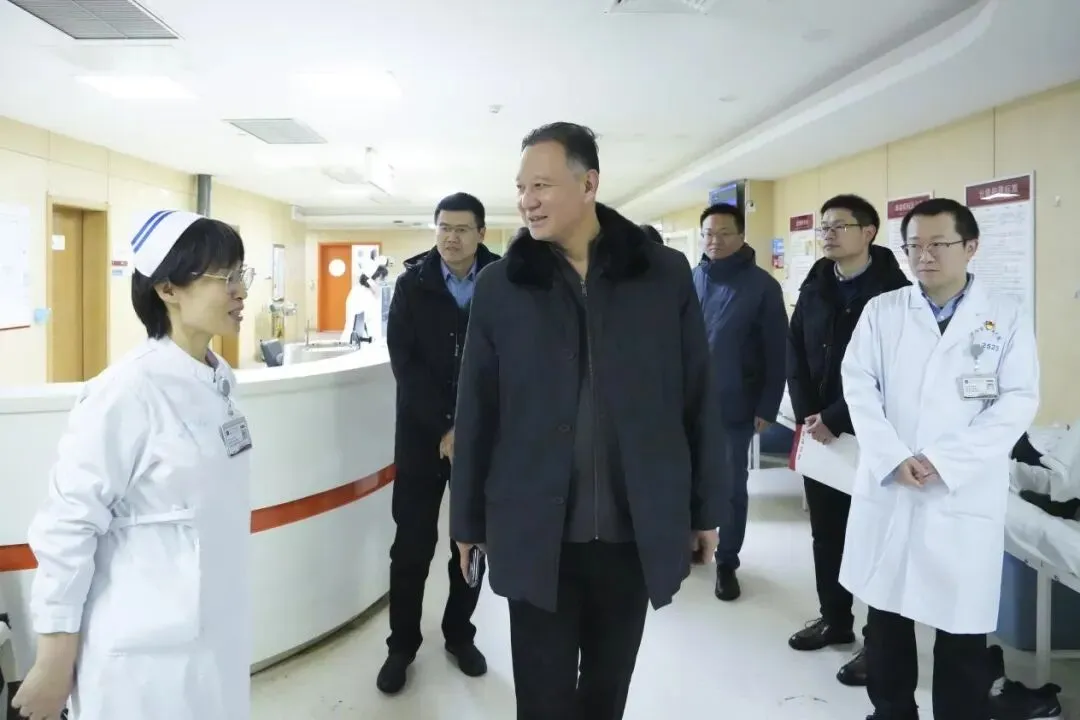 随后,他前往心内科病区。受持续低温影响,急性心肌梗死、心力衰竭等心血管疾病患者数量显著上升。闫书记要求心内科联合急诊科、导管室等关键部门,必须畅通胸痛绿色通道,优化接诊流程,做到“早识别、快转运、强协同”,确保高危患者在黄金时间内得到有效救治。