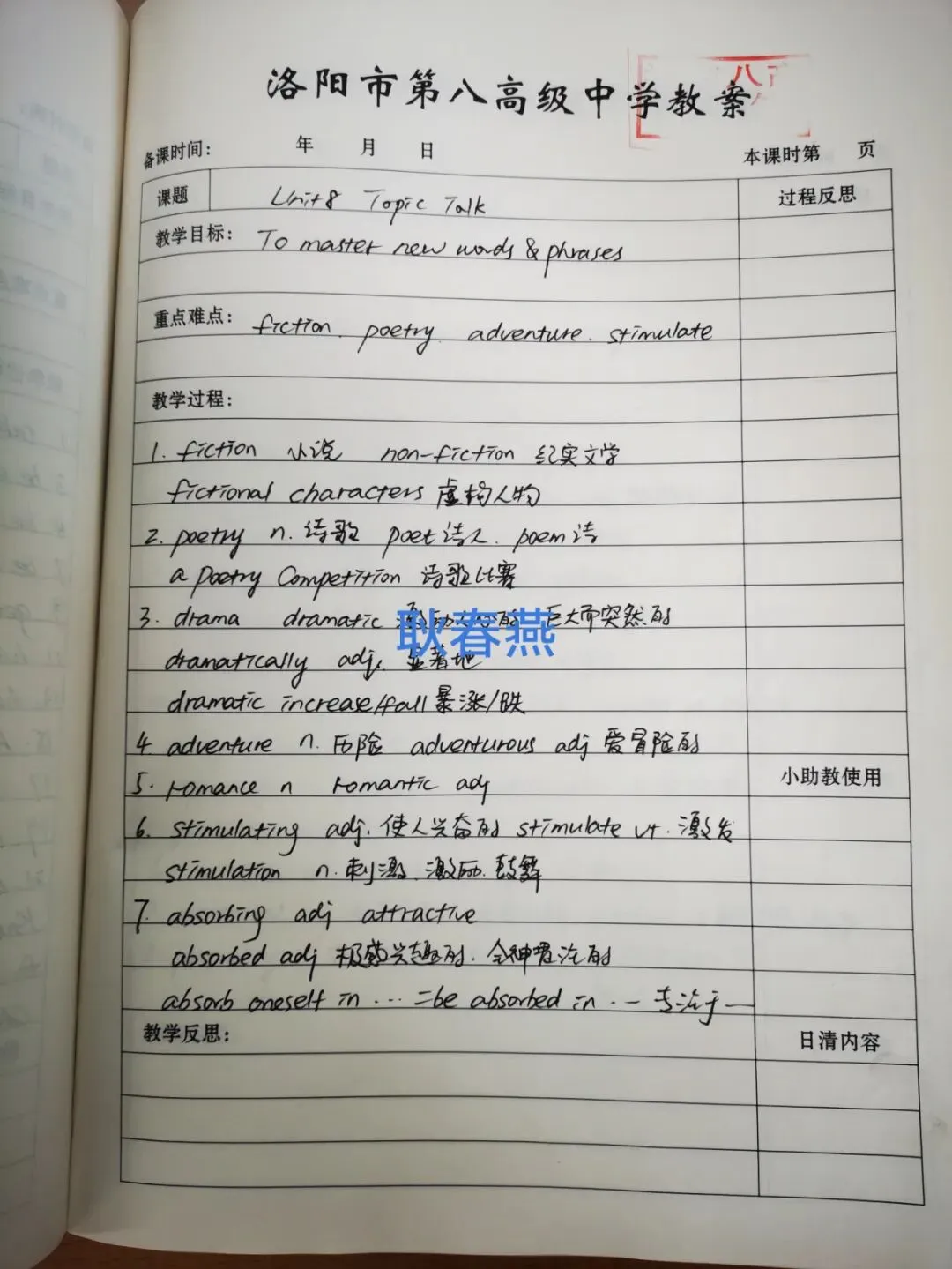 教学工作中,八高的老师们表现出了高标准高规格的教育教学态度,他们一丝不苟,勤恳治学,无论是课下的备课还是课堂的传授,都堪称典范,特将部分榜样展示如下: