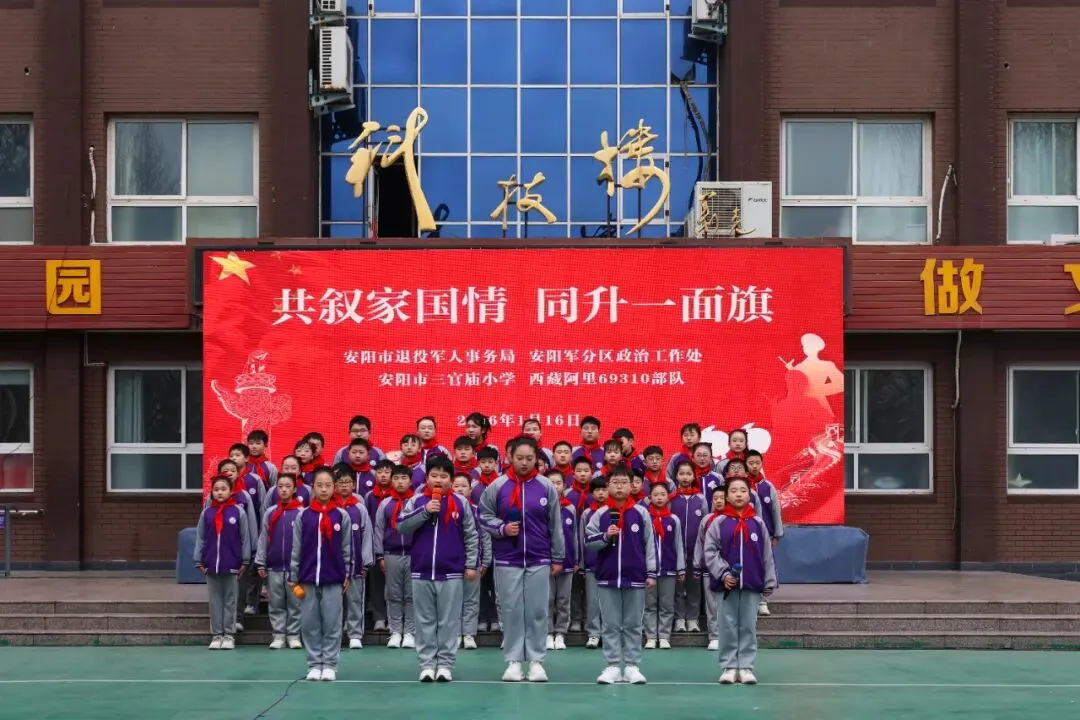 “致敬英雄!强国有我!”2026年1月16日上午,安阳市三官庙小学的校园内掌声雷动、誓言铿锵。与此同时,千里之外的西藏阿里69310部队营地,同样的五星红旗冉冉升起,同样的爱国情怀激荡人心。这场以“共叙家国情 同升一面旗”为主题的云端联动活动,让内地校园与边疆哨所跨越山海紧紧相连,为全体师生上了一堂生动而深刻的爱国主义思政课。