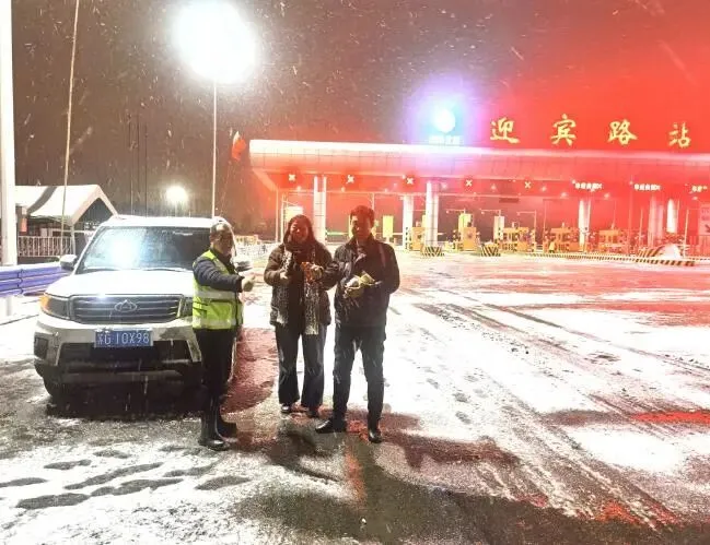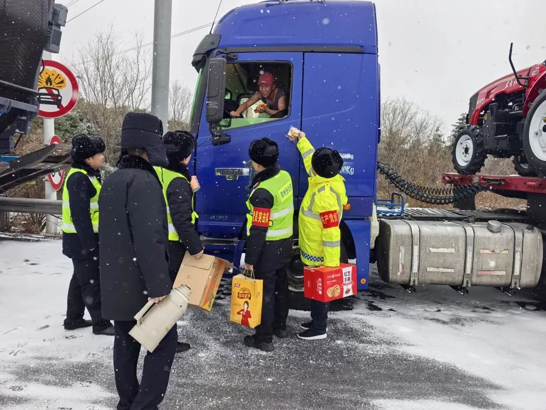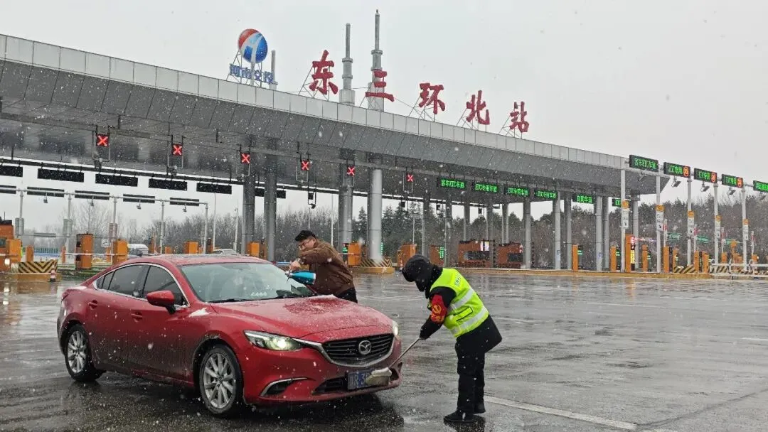 圃田收费站:顶风冒雪逐车为滞留司乘送上热饮、食品获赞