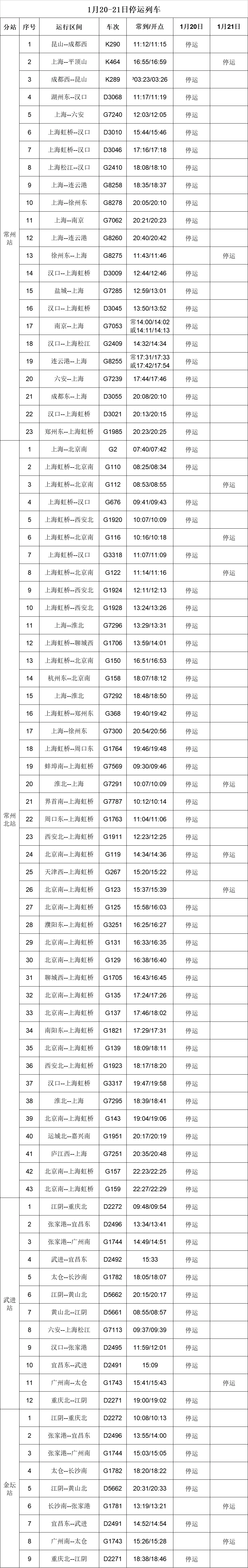 铁路常州站发布列车临时停运信息