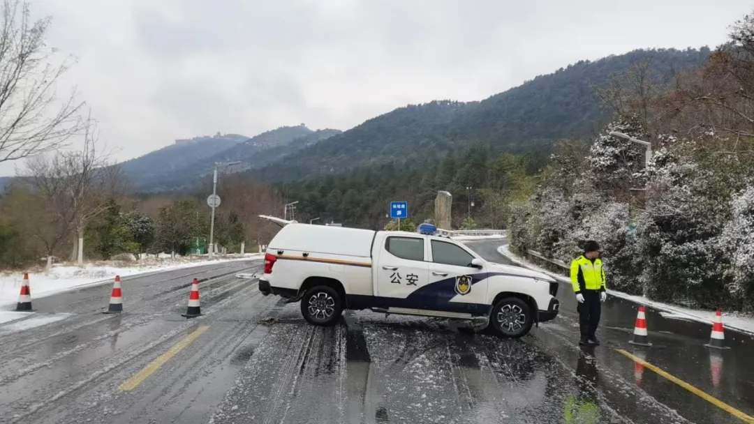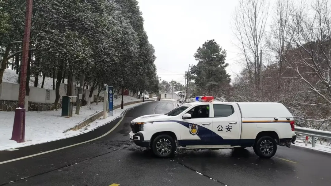 受当前天气影响,我区茅山旅游大道路面出现积雪结冰、道路湿滑现象,存在道路交通安全隐患。为确保驾乘人员生命财产安全,即刻起,交管部门对茅山旅游大道全线实行临时交通管制,禁止所有车辆通行,请广大驾驶人提前规划好出行时间和路线。恢复时间另行通知。