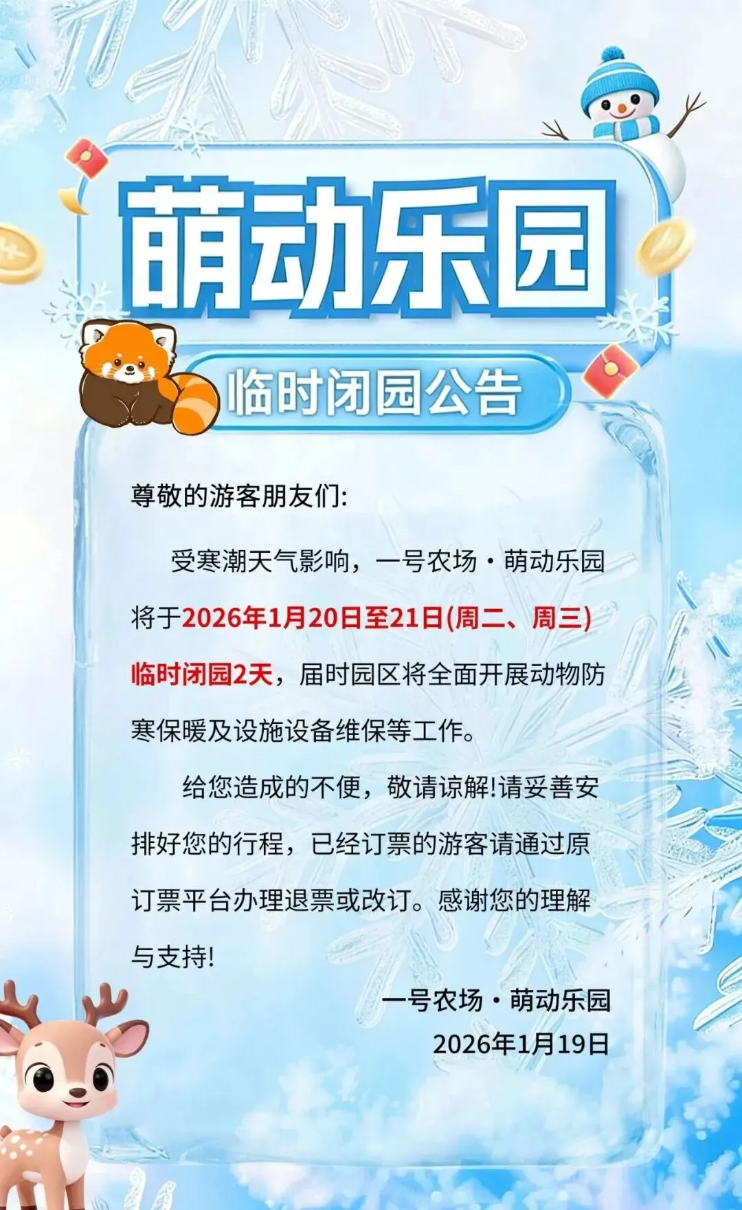 临时闭园的重要公告