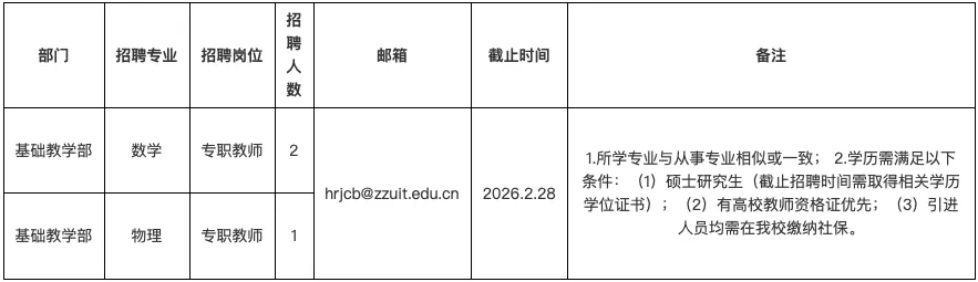 郑州工业应用技术学院基础教学部2026年专职教师招聘公告