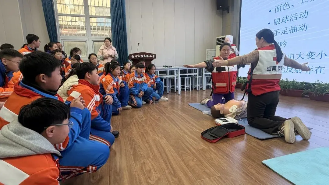 为进一步增强师生应急救护意识,提升自救互救能力,安阳市梅东路小学联合安阳市红十字应急救援队于2026年1月20日开展了应急救护普及培训进校园活动,培训内容包括心肺复苏、异物梗阻、卫生健康三方面,学校总务处全体成员及四、五年级师生代表共计116人参加了本次培训。