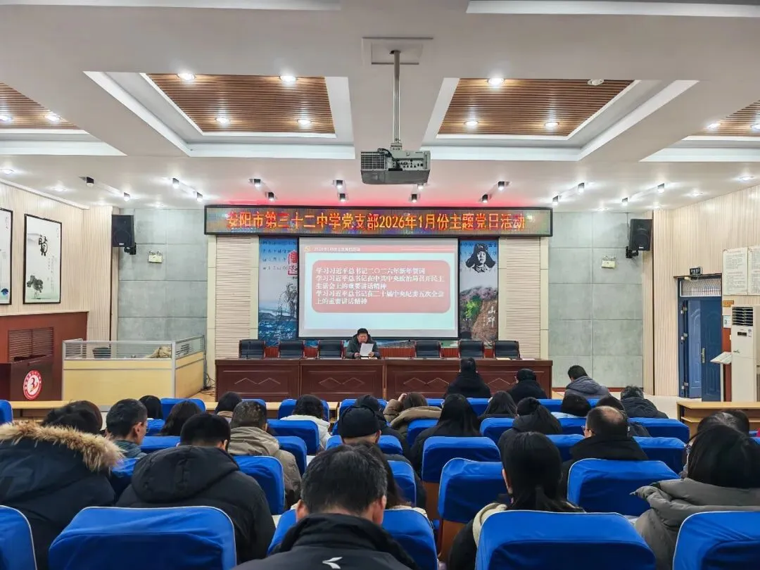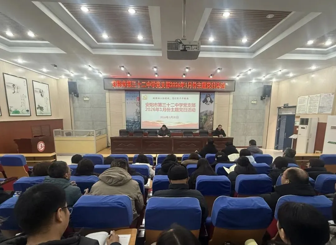 1月20日下午,安阳市第三十二中学党支部以“砥砺初心担使命,笃行实干开新局”为主题,在学校大会议室开展了2026年1月份主题党日活动,全体党员参加。