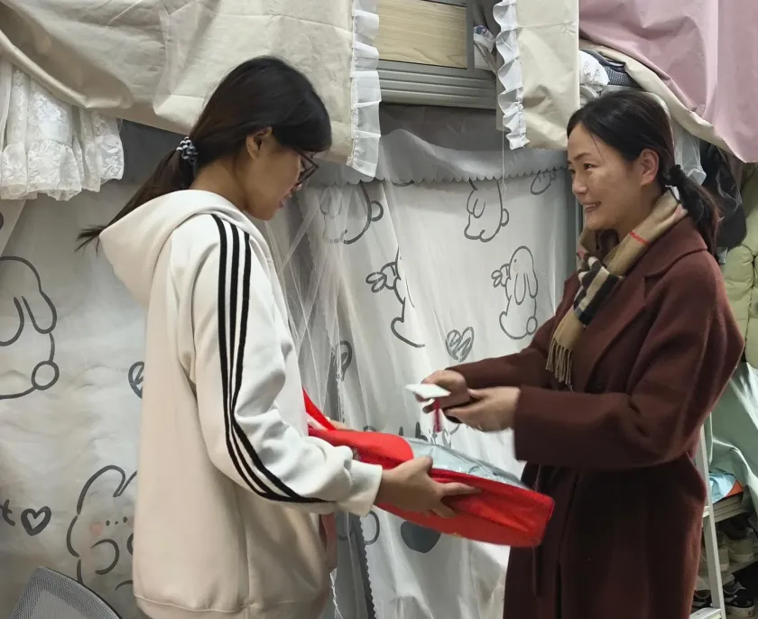 本次送温暖活动,是为家庭困难学子发放御寒物品,主要包括羽绒服和保暖套装共计230套,同时附有学校领导和老师亲手书写的“天冷注意添衣,学校与你同行”等内容的温馨卡片。发放过程中,校领导亲切叮嘱同学们注意防寒保暖和假期外出安全,鼓励他们安心学习、积极向上,并强调学校将始终作为同学们的坚强后盾,持续关注每一位学生的成长与发展。