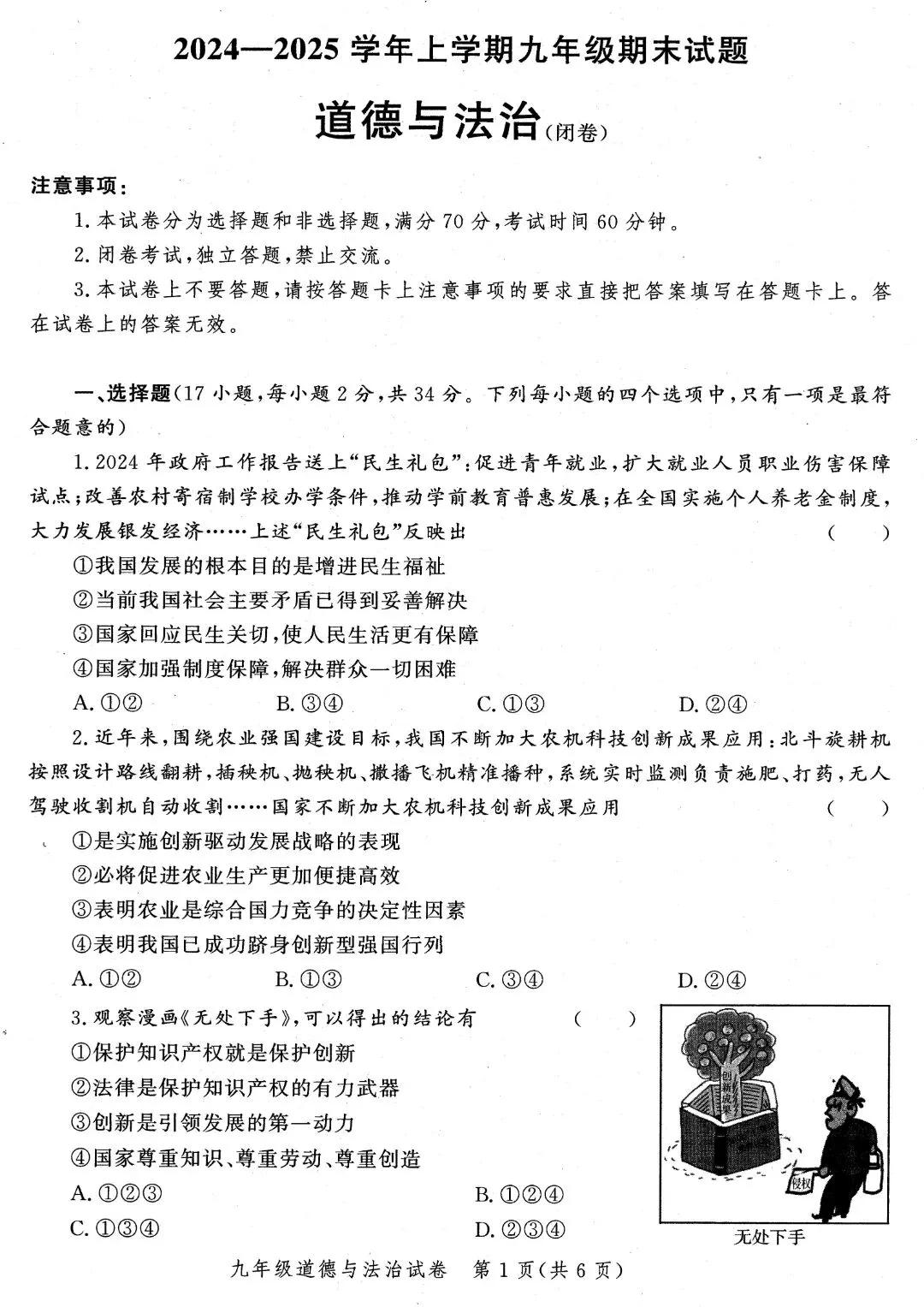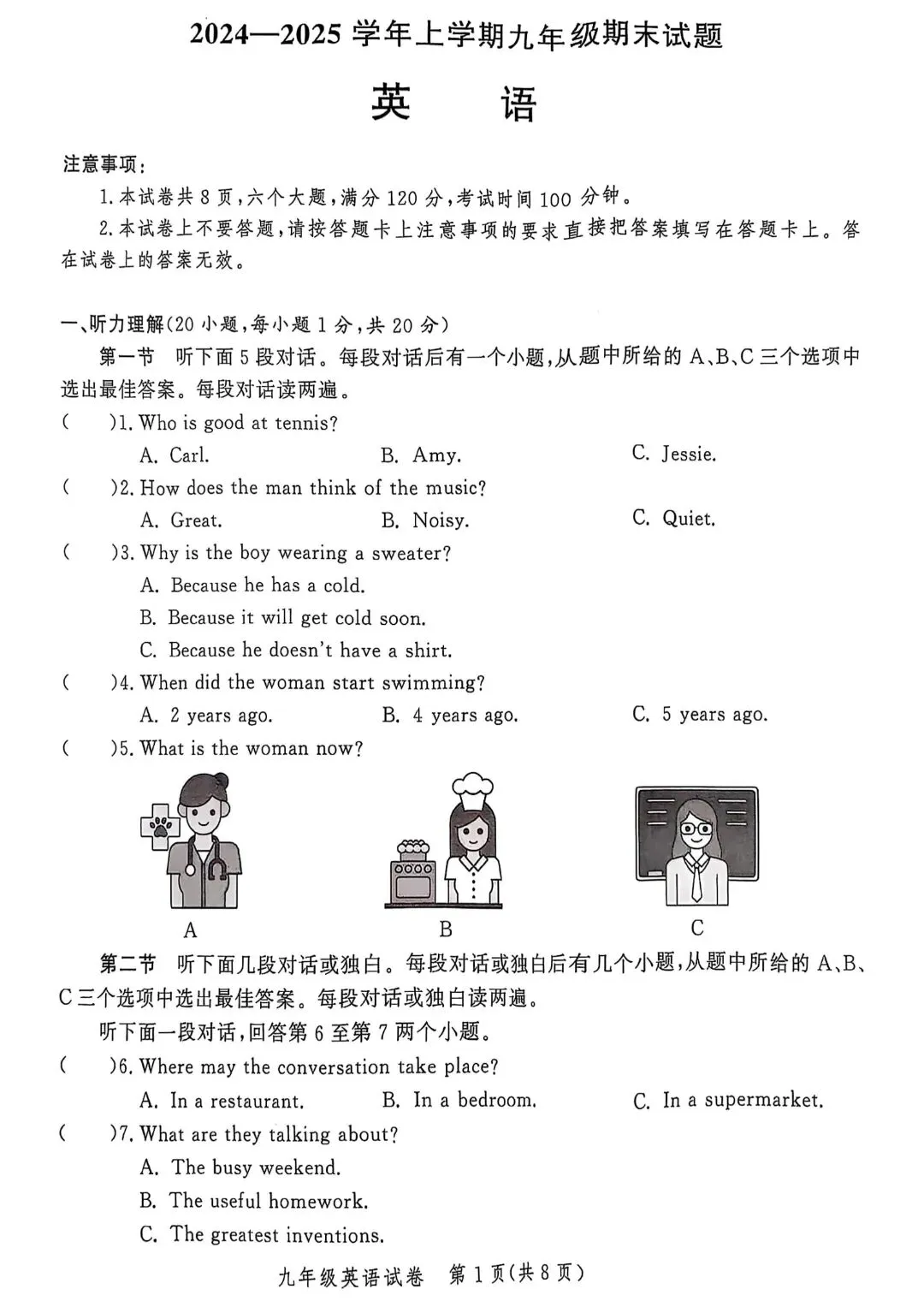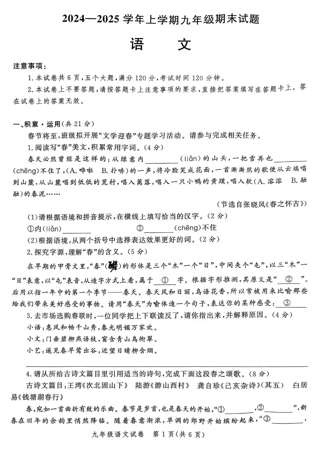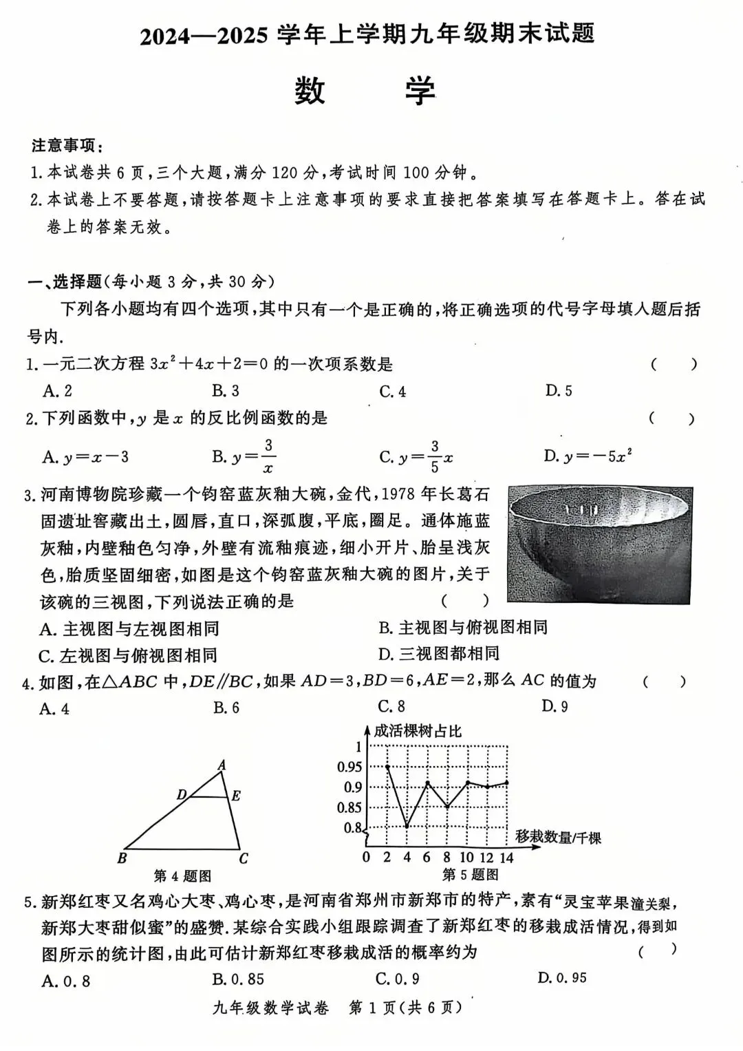 郑州2024-2025学年多校联考九年级上学期期末考试试题及答案(7科全,文末下载)