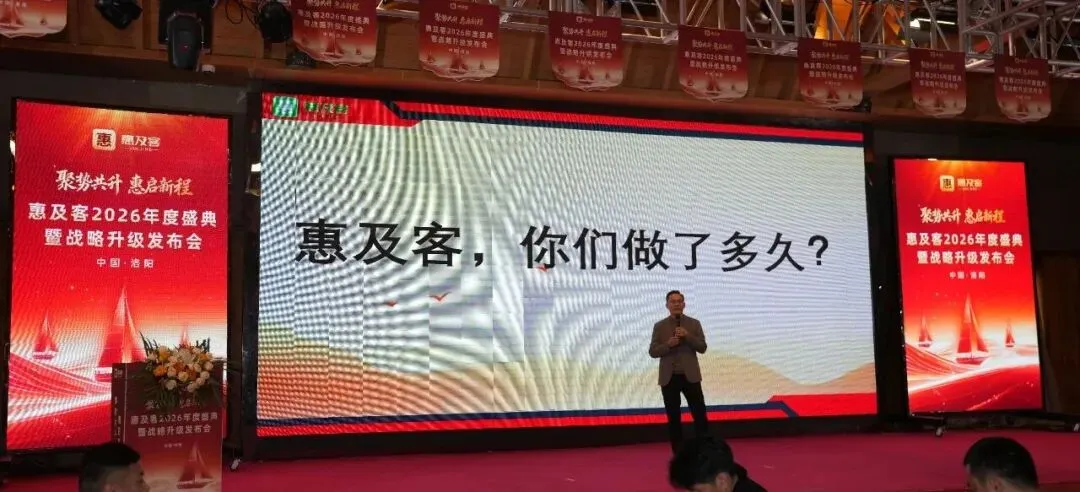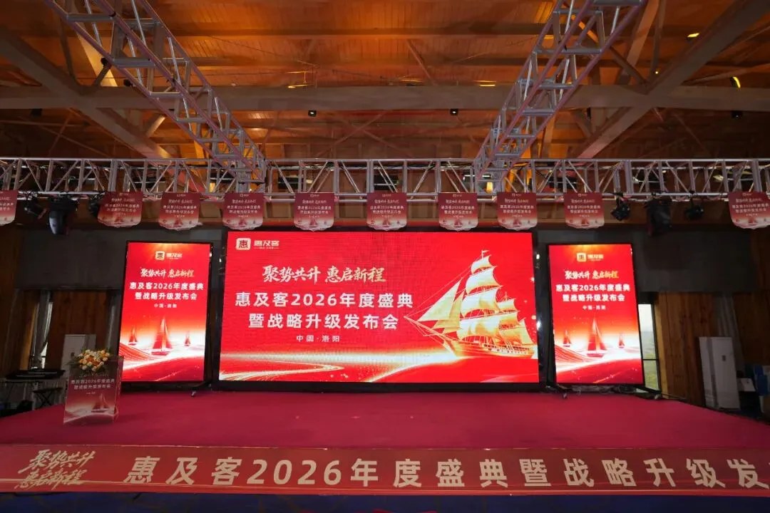 2026年1月17日,洛阳凤翔山庄人声鼎沸,红毯两侧的灯笼映着一张张兴奋的脸庞——惠及客2026年度盛典暨战略升级发布会正在这里举行。不同于常规年会的酒酣耳热,这场发布会更像一场“宣言大会”:惠及客平台创始人刘大亨站在舞台中央,身后的大屏幕上闪过“3年上市”四个大字,台下掌声雷动,没人再像半年前那样嘲笑这是“天方夜谭”。从十年蛰伏到全国扩张,从创业“意难平”到70万用户的信赖,惠及客的故事里,藏着太多创业人的共鸣与惊喜。