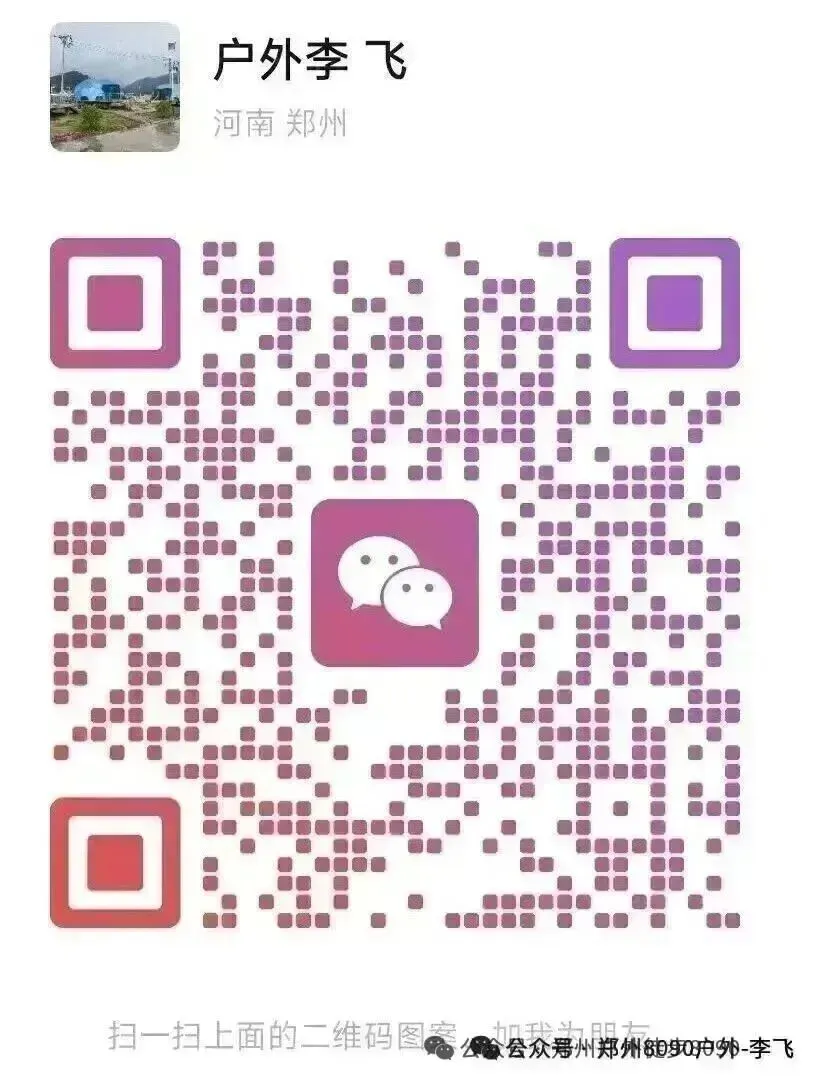 报名方式:添加郑州8090户外李飞微信,完成转账,并发送以下信息,视为成功报名。(活动日期+网名或真实姓名+人数+联系方式+上车点)