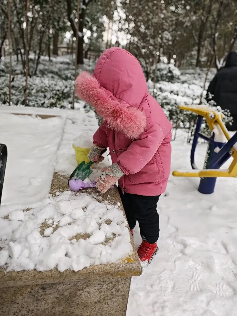孩子们则是最开心的,就算手指头冻得像胡萝卜也要坚持在雪地里玩。