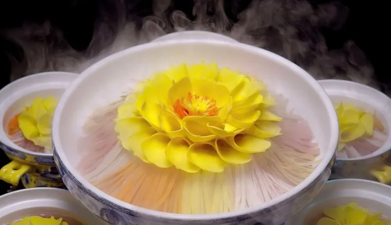 点一份牡丹燕菜,汤清见底,萝卜丝切得细如发丝,入口即化。再来碗浆面条,酸得恰到好处,芹菜段铺在上面,一口下去,醒神。