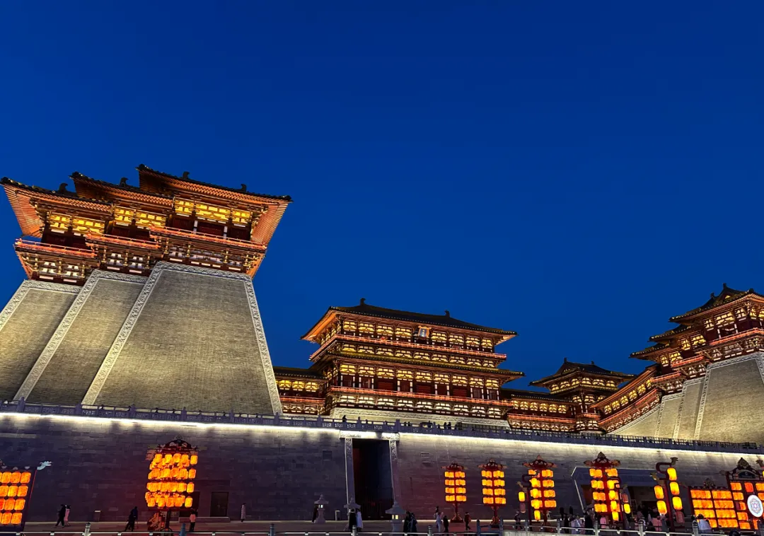 明堂天堂景区,景点不仅是上朝的地方,还是举行祭祀、庆典的场所,可以直观感受到唐朝的礼制和皇权,有着“天堂”“夯土遗址”“演出与汉服”等亮点,体现的是‘神权至上’,皇权来自于神权。夜幕之后,可登“天堂”最高处,俯瞰灯火璀璨的城市夜景,遥望明堂、应天门,领略大唐盛世。