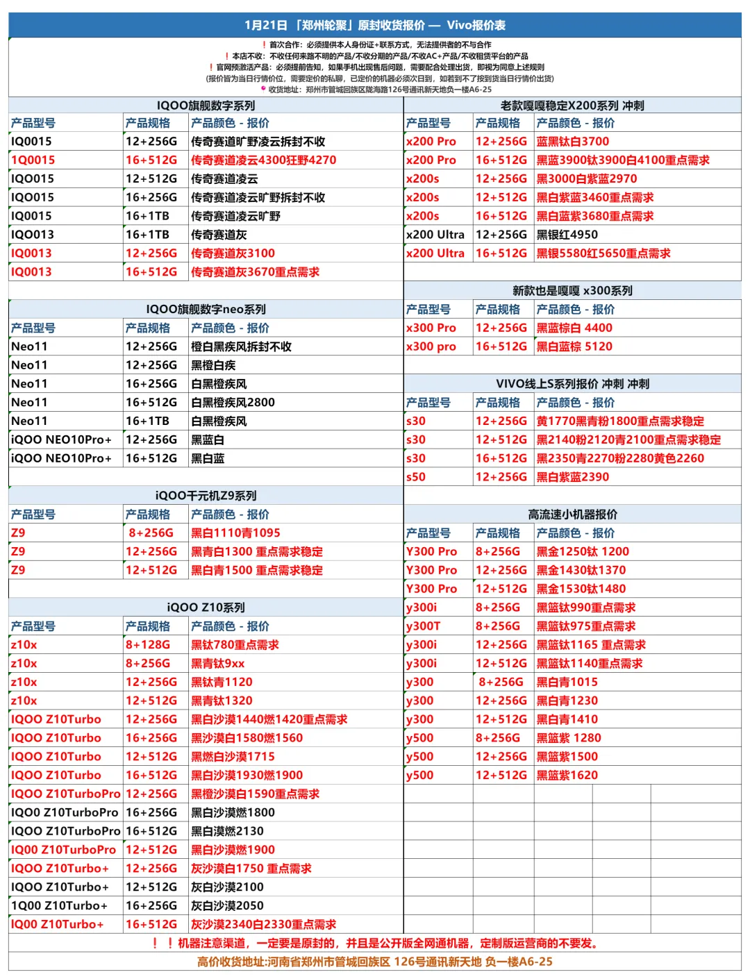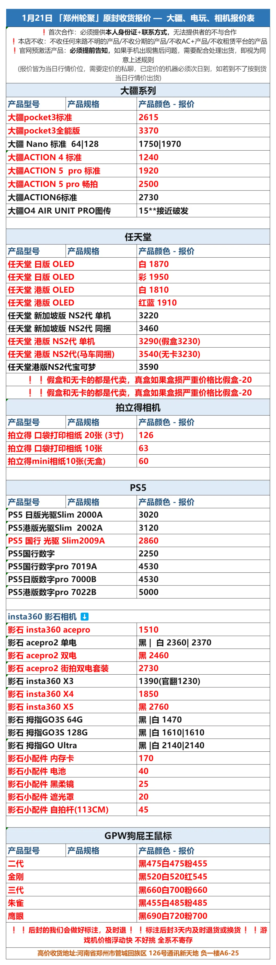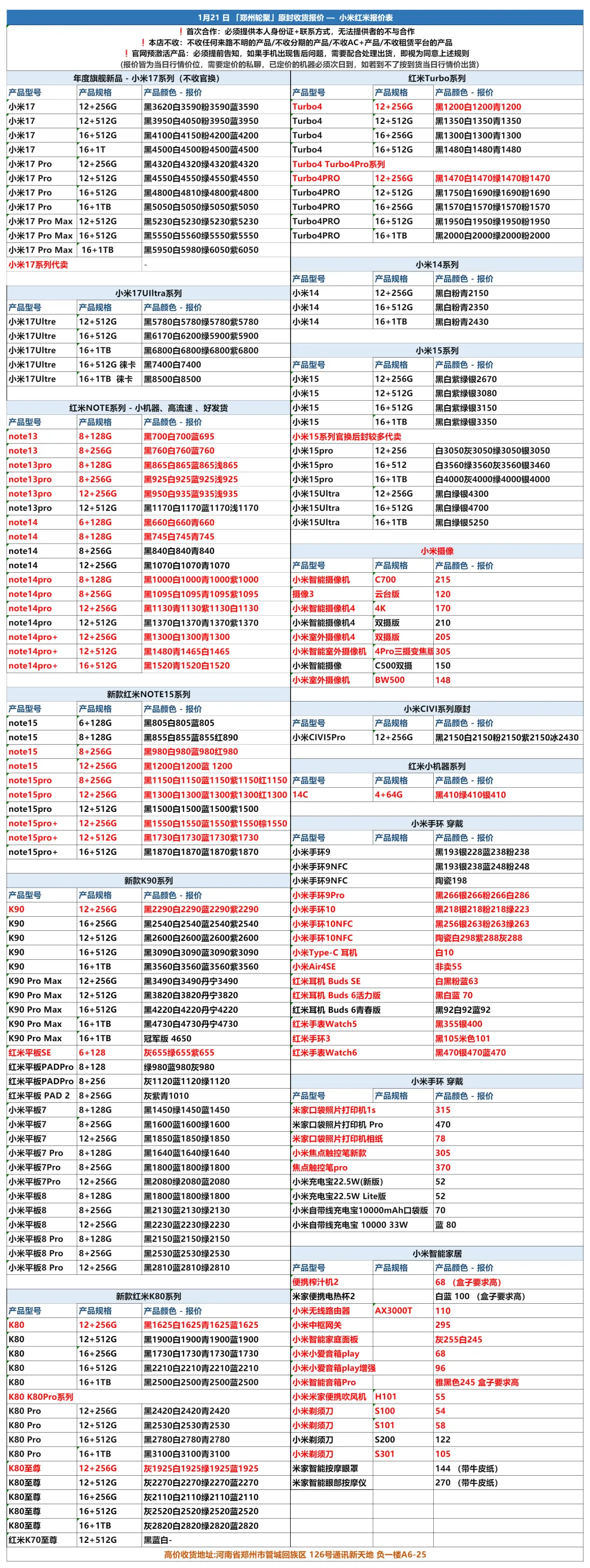 郑州轮聚通讯 2026年1.21日数码报价更新