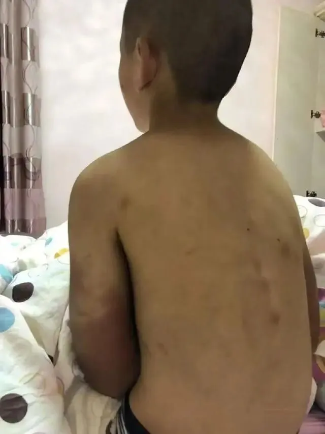 孩子的两条胳膊对称位置全是紫红的肿胀,后背布满了深浅不一的淤青,眼角有一道没愈合的划伤,脊椎上还有两道清晰的条状伤痕,像是被鞭子抽过。
