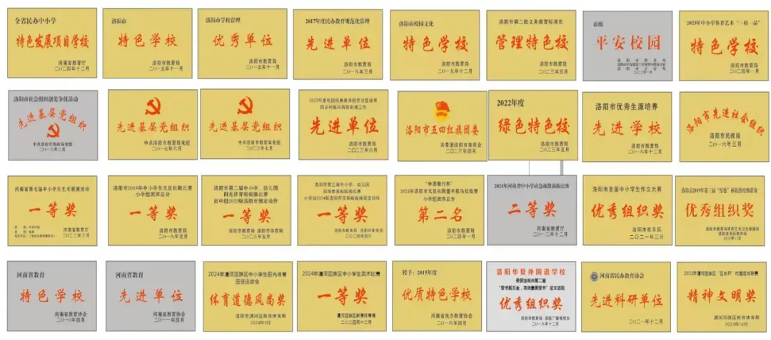 洛阳华夏外国语学校是经洛阳市教育局批准集幼儿园、小学、初中于一体的现代化寄宿制名校。学校校园环境优美,布局科学合理,以培养“人品好,能力强,知识丰富的成功华夏人”为办学目标,以规范办学立校,特色办学强校,连续两年被评为“洛阳市民办教育规范化管理先进单位”,先后荣获“特色学校”,“市级平安校园”、“洛阳市义务教育标准化管理特色学校”、“洛阳市中小学体育艺术‘一校一品’特色学校”等荣誉称号,2024年学校被授予“全省民办中小学特色发展项目学校”。