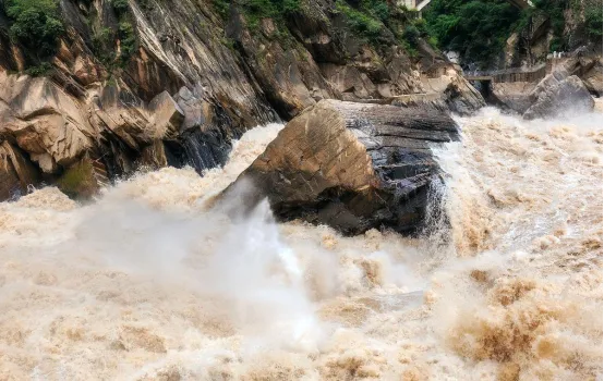 虎跳涛如啮,金沙石似铁。