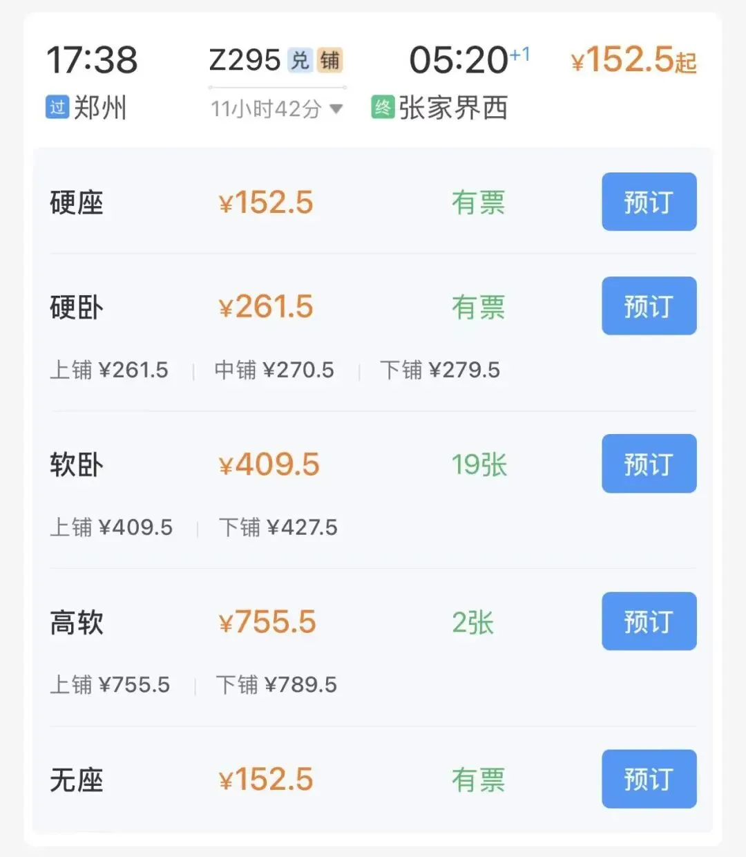 *票价截图均来自于铁路12306