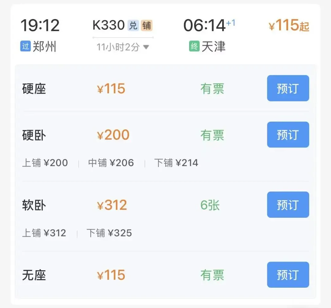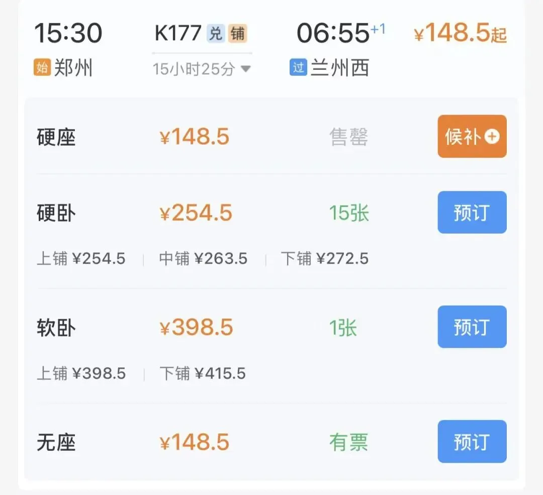 朋友们如果打算卧铺出发