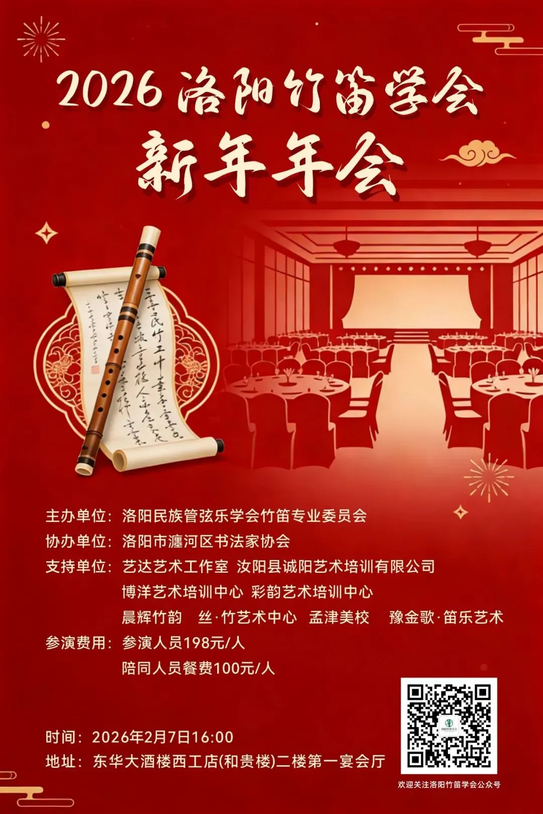 旨在团结洛阳全体笛箫艺术工作者和笛箫爱好者,推广笛箫艺术,弘扬河洛文化,传承艺术瑰宝。促进笛箫艺术在我市从文化起源到乐器制作、曲目创作、教育普及、研学旅行等产业链条。