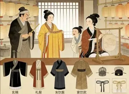 “阿鲤听好,”刘福展开那件细麻直裾深衣,“明日流程:辰时正,全家穿玄端深衣赴里社祭祀;巳时至午时,我与你娘送灯到太常府,需着礼服深衣;午后游西市,可换常服深衣;晚间赏灯宴,又得换回郑重些的……”