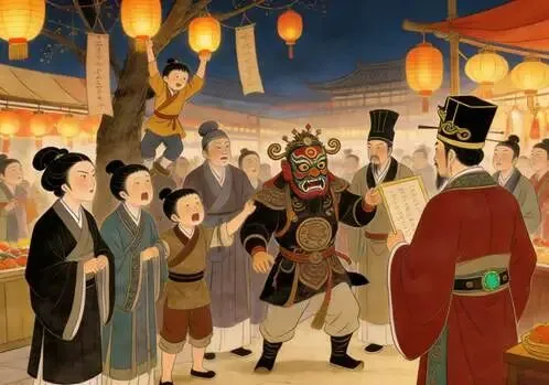 “姑母此言差矣。”阿鲤今日第三次换衣,穿了件便于走动的窄袖深衣,正兴奋地东张西望,“您看那边卖面具的摊子——戴傩戏面具者,可暂免衣冠之礼呢!”