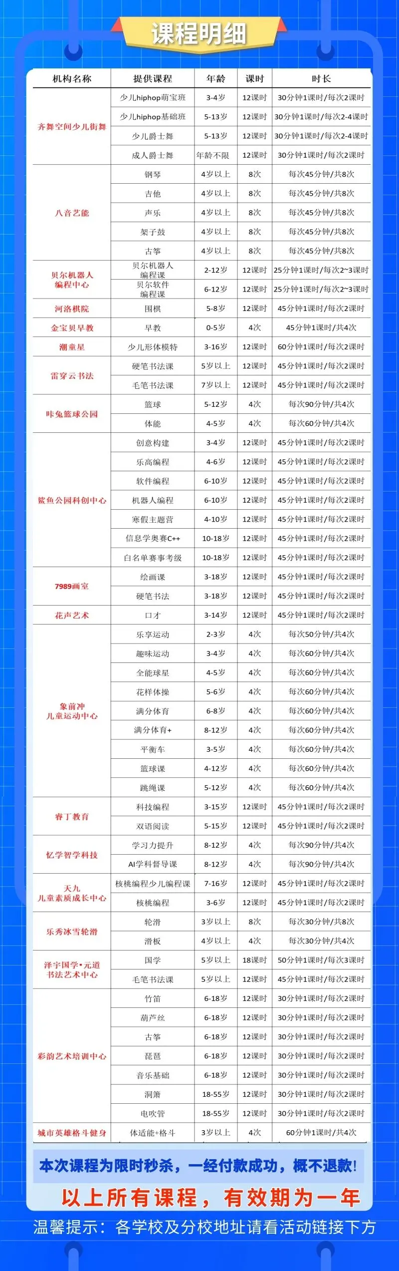 我们把可选课程和机构都列好了