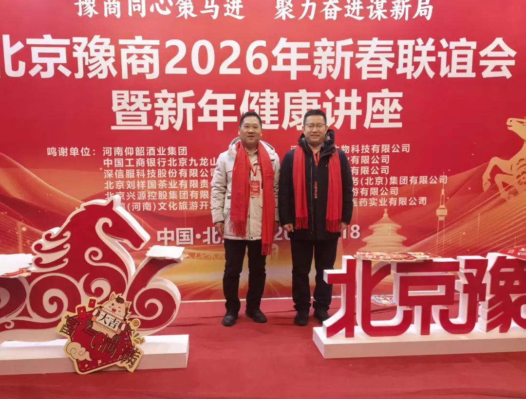 2026年1月18日,我商会会长梁向明、常务副会长李俊峰受邀参加“北京豫商2026年新春联谊会暨新年健康讲座”。本次活动以“豫商同心策马进 聚力奋进谋新局”为主题,汇聚了各界相关领导及各地嘉宾500余人,现场气氛热闹非凡。