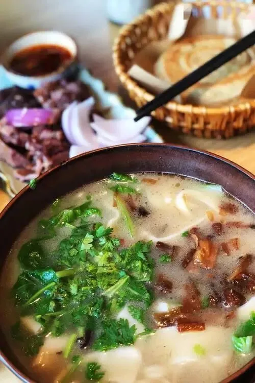 晚上牛肉汤或羊肉汤,加烧饼,胃会谢你。