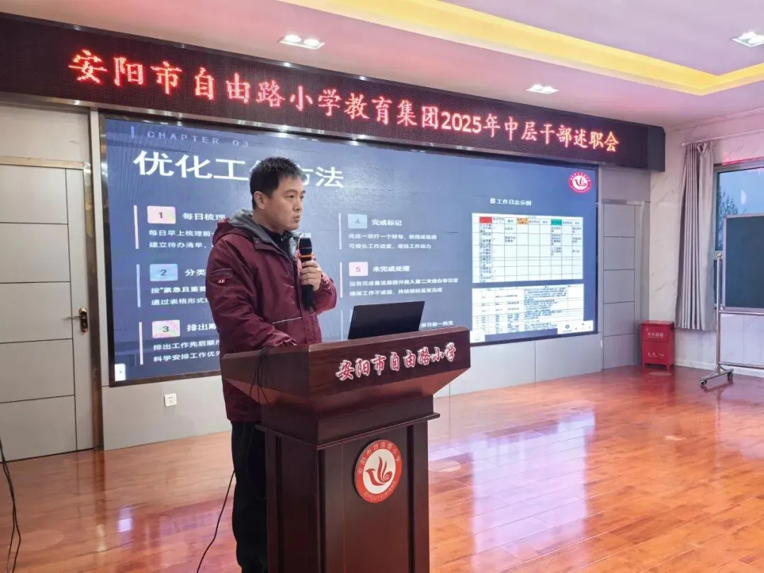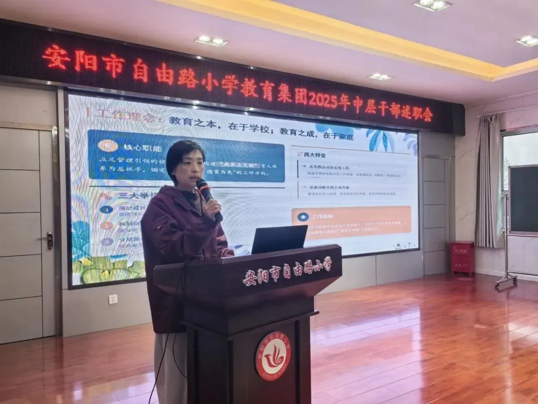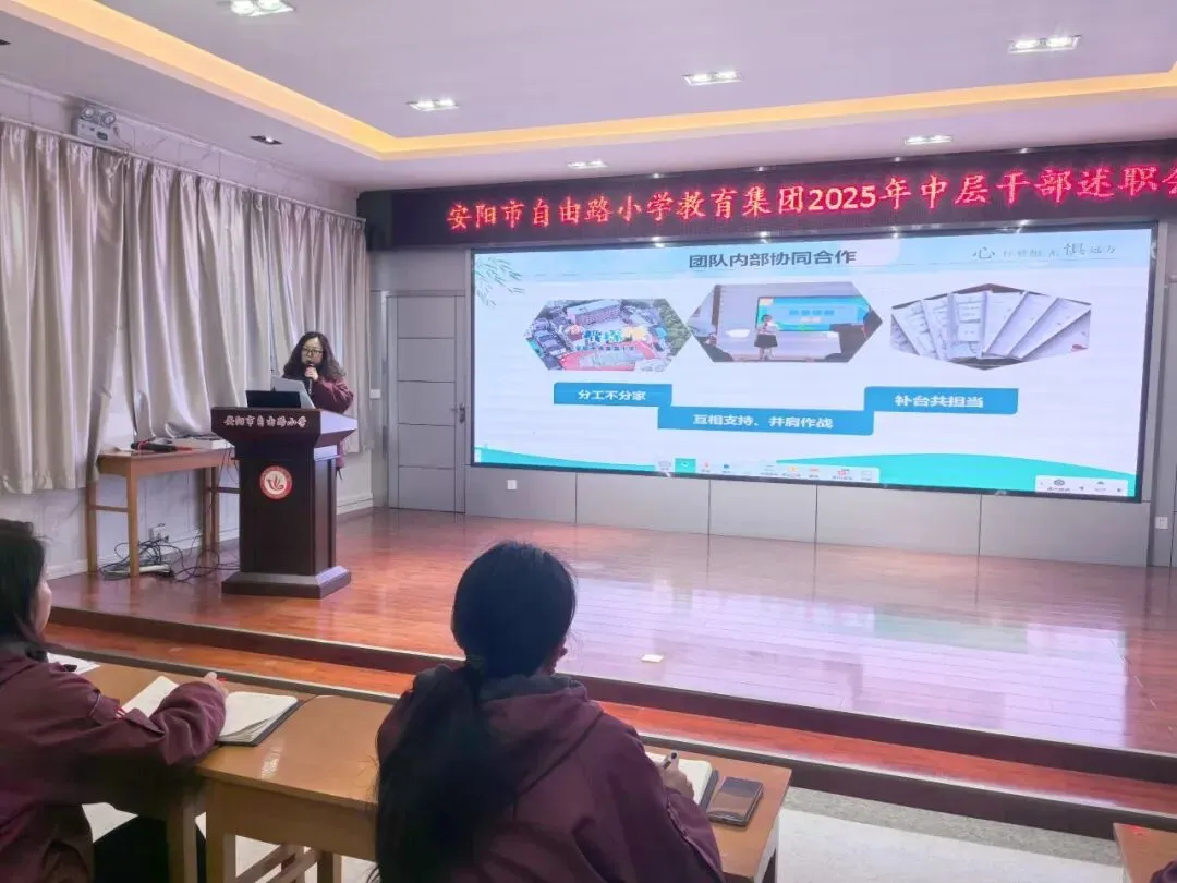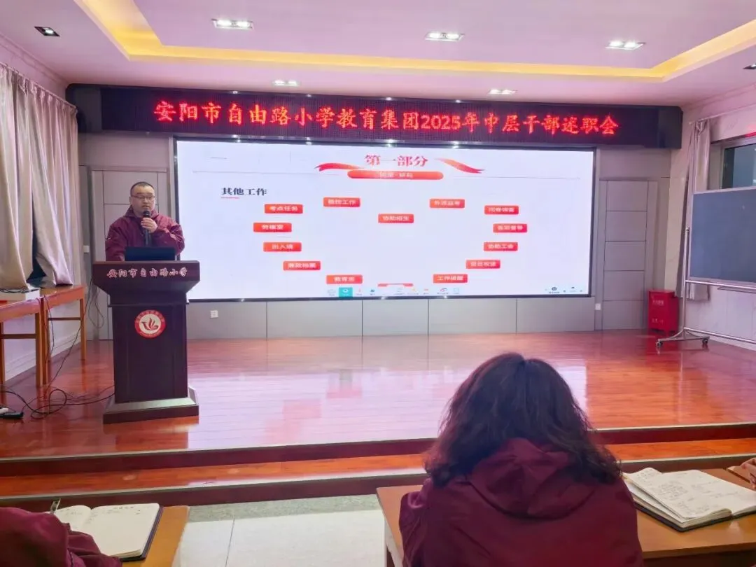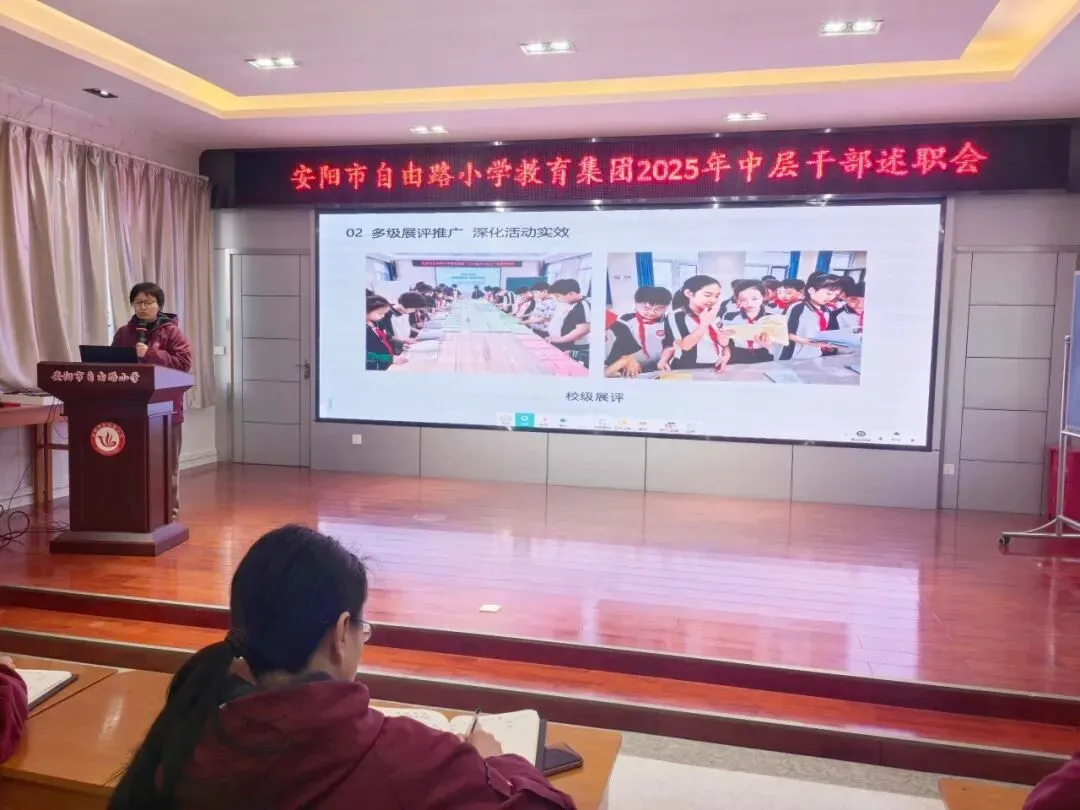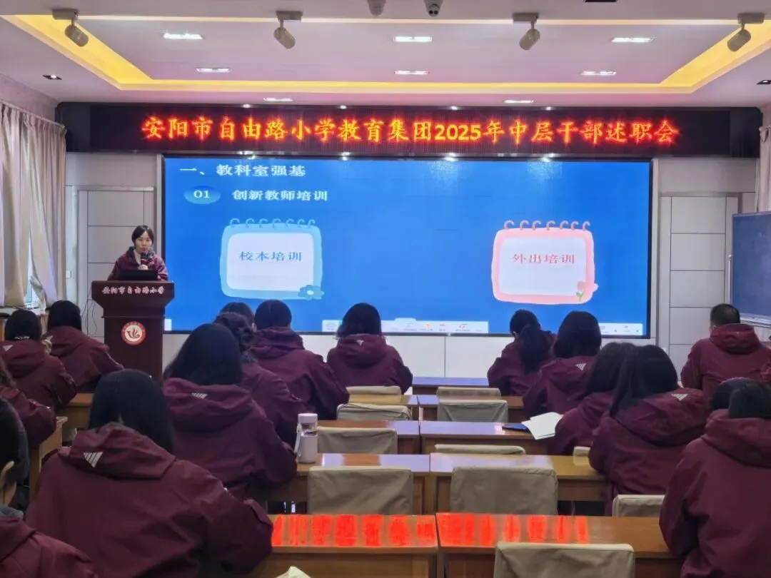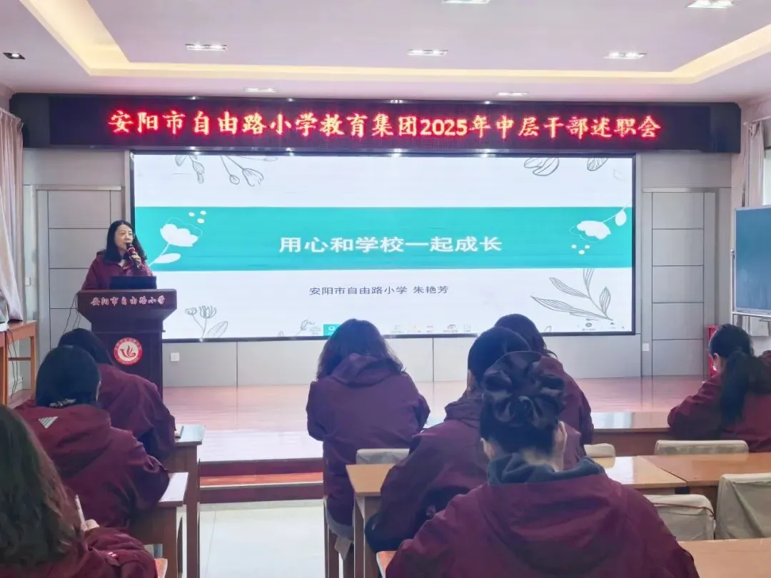 为持续提升学校治理与教育教学质量,进一步凝聚共识、明晰方向,安阳市自由路小学教育集团于近日召开2025年中层干部述职会。作为学校发展的中坚力量,全体中层干部通过详实的履职汇报,系统展示了过去一年的工作实绩与思考,彰显了应有的担当与作为,为学校发展注入了持续动力。