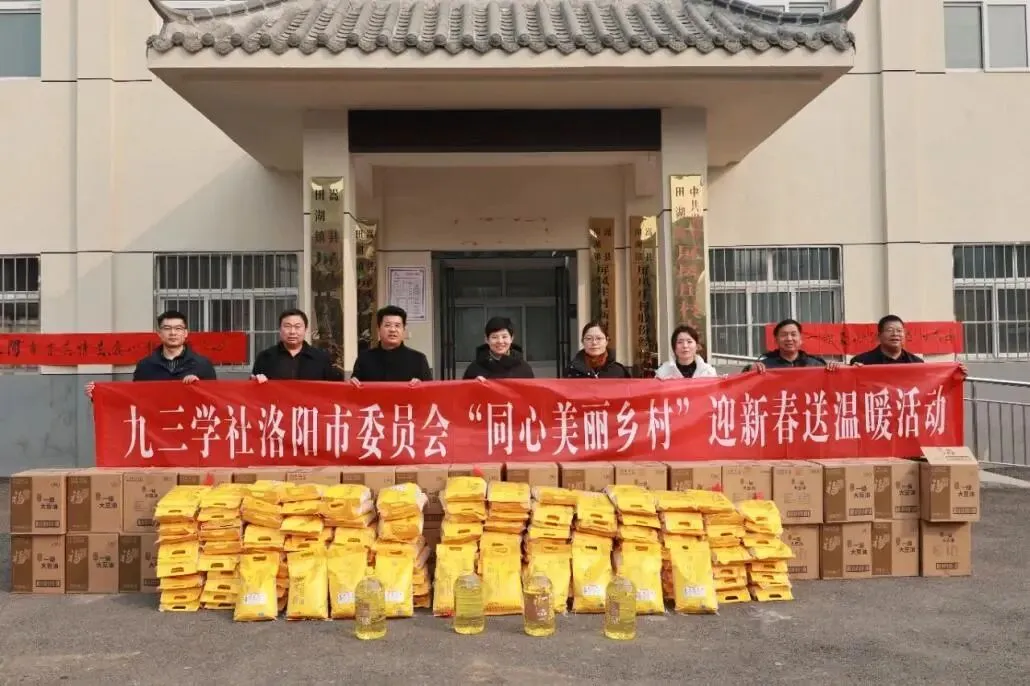 1月21日至22日,九三学社洛阳市委会前往洛宁县上宋窑村和嵩县屏凤庄村,举行“同心美丽乡村”迎新春送温暖活动,共向村民送去了价值4万余元的食用油、大米等慰问物资。