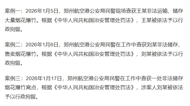 近期,郑州公安机关联合相关部门严厉打击烟花爆竹违法行为,现将3起典型案例通报如下: