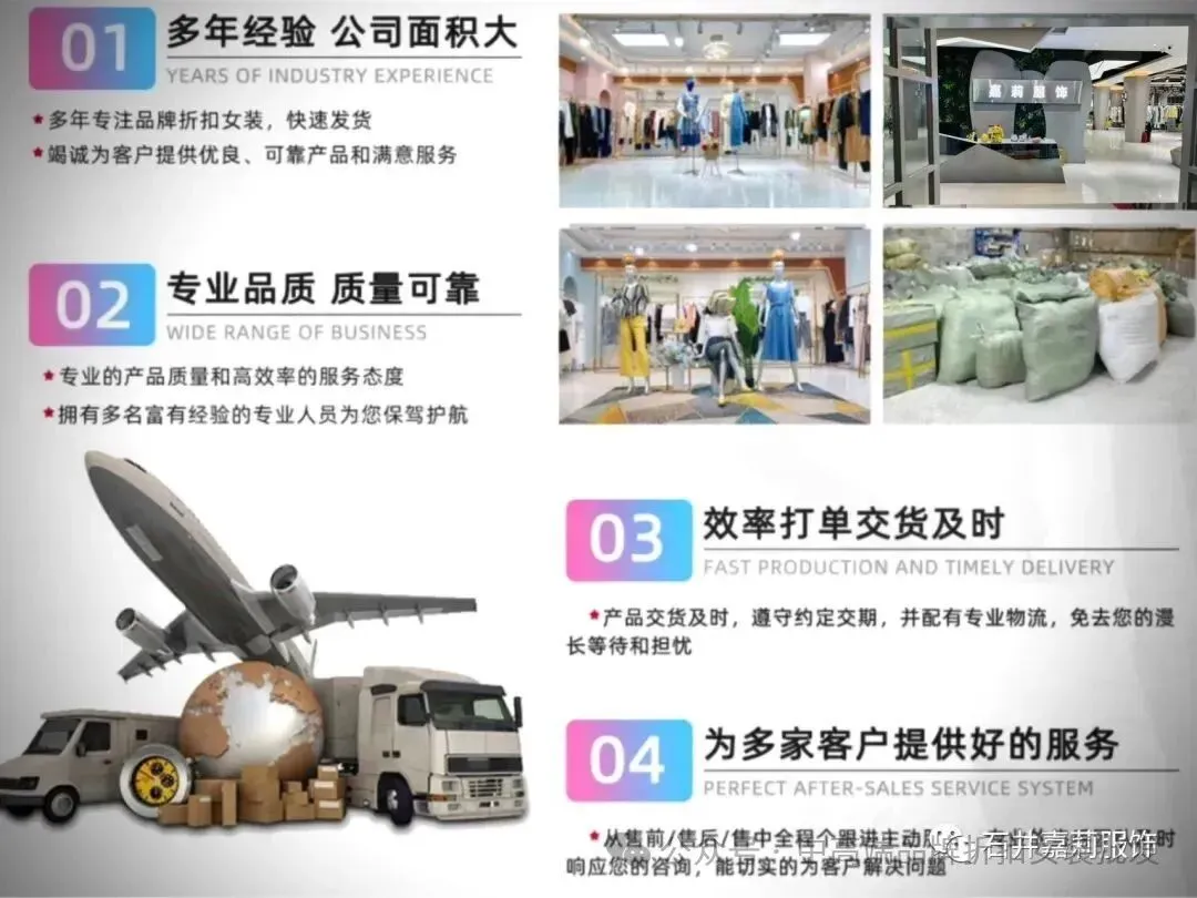 广州嘉莉服饰专业经营国内外中高端品牌折扣女装,品牌女装尾货,品牌专柜女装货源,品牌库存女装,品牌女装折扣批发,公司长期与各大品牌厂家合作,品牌汇聚粤派(广东)、温派(温州)、苏派(苏州)、汉派(武汉)、杭派(杭州)、闽派(福建)、海派(上海)、京派(北京)八大流派,以及香港台湾等知名品牌。货品涵盖北京、上海、广州、深圳、杭州派系女装品牌厂商!!