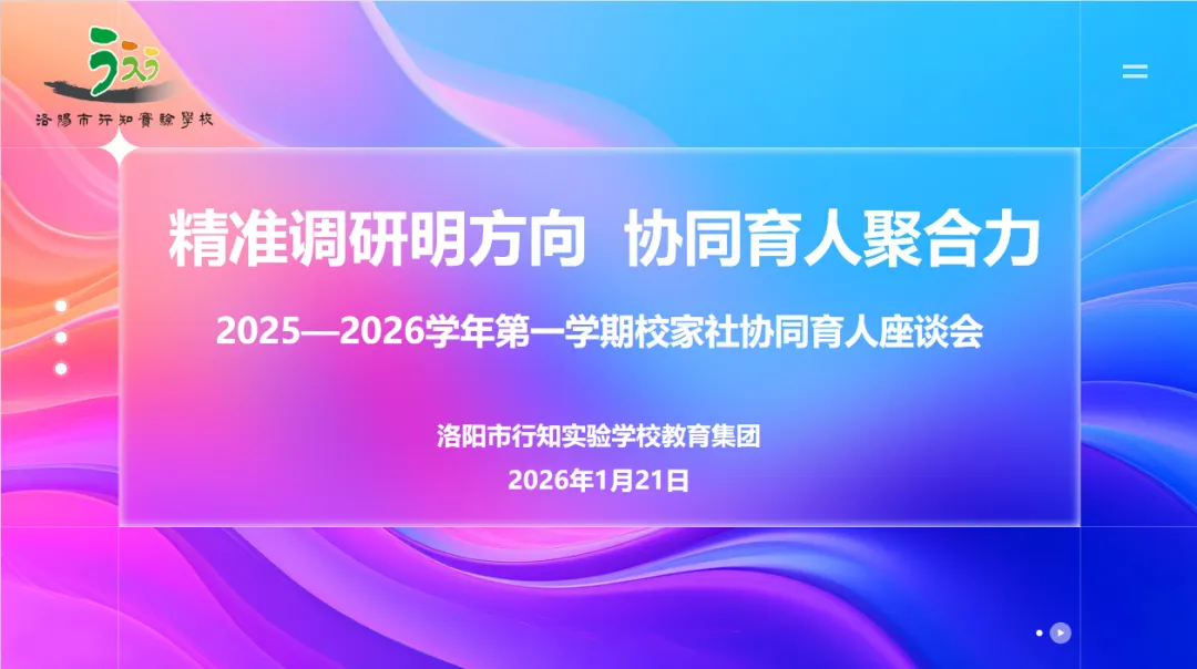 本次座谈会气氛热烈,校家社三方在观点碰撞中凝聚了育人共识,为学校2026年协同育人工作的精准推进奠定了坚实基础。未来,洛阳市行知实验学校教育集团将持续搭建开放、包容、协作的育人平台,携手家长与社会各界,共同助力学生的全面发展与成长,为培养担当民族复兴大任的时代新人贡献坚实力量!