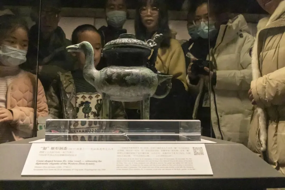 跨进馆门,看贾湖骨笛的孔洞里藏着八千年前的风,莲鹤方壶的羽翼上栖着春秋的月光,妇好鸮xiāo尊的纹路里刻着殷商的传奇。