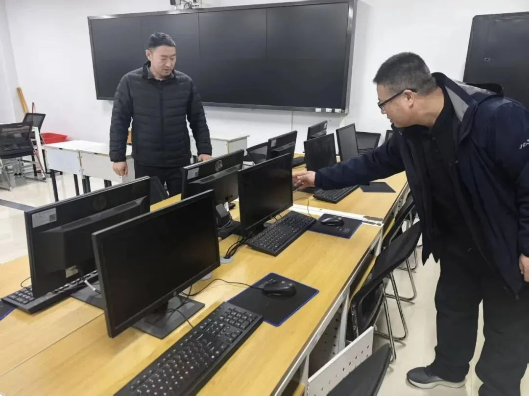此次排查聚焦安全关键领域,重点对教学楼公共区域及教学实训场所进行全面排查。在公共区域,检查人员逐一核查门窗锁具完好情况,细致检查消防栓、灭火器等消防设施的压力数值、有效期及摆放位置,确保应急通道畅通无阻、消防器材随时可用;深入教室与实训室后,对电子教学设备、空调、配电箱等用电设施进行全面“体检”,重点排查线路老化、设备漏电、开关故障等潜在风险,确保排查无死角、无盲区。针对检查中发现的细微隐患,现场立即落实整改,实现“即查即改、立行立改”,及时将风险消除在萌芽状态。