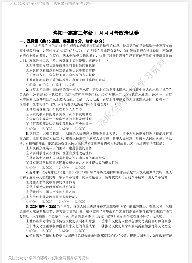 >【河南卷】【洛阳市一高】【高二联考】河南省洛阳市第一高级中学2025-2026学年高二上学期1月月考(1月开考)