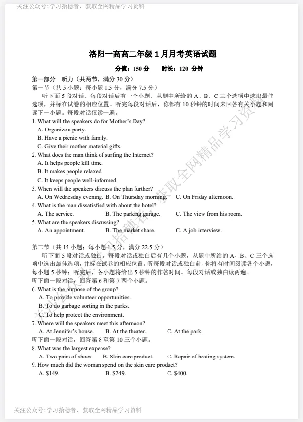 洛阳市期末考试安排出炉!(附历年真题)